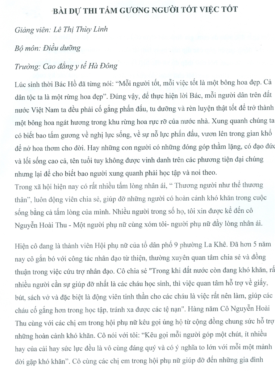 Giải Ba Cuộc thi Viết về Gương điển hình tiên tiến, người tốt việc tốt của Trường Cao đẳng Y tế Hà Đông năm 2025 (4/22/2025 12:00:00 AM)
