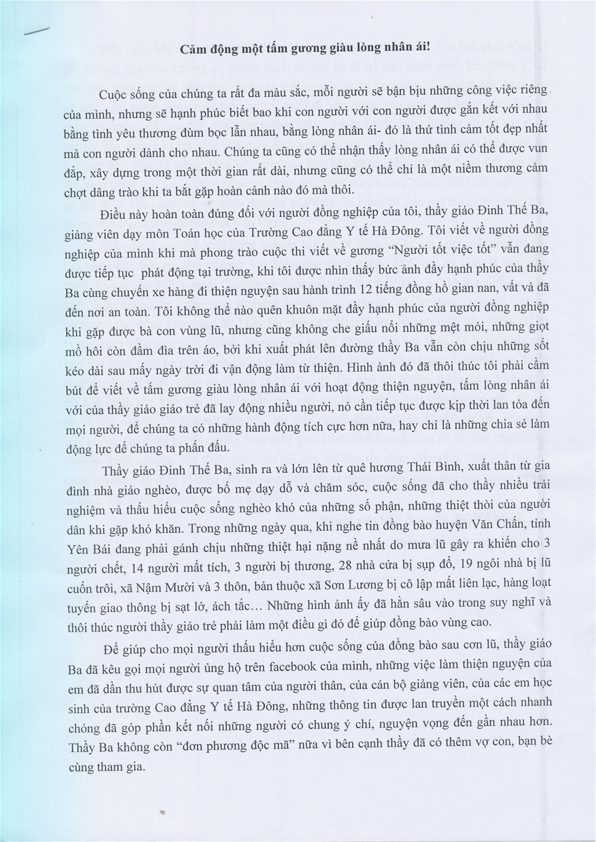 Giải Ba Cuộc thi Viết về Gương điển hình tiên tiến, người tốt việc tốt của Trường Cao đẳng Y tế Hà Đông năm 2025 (4/22/2025 12:00:00 AM)