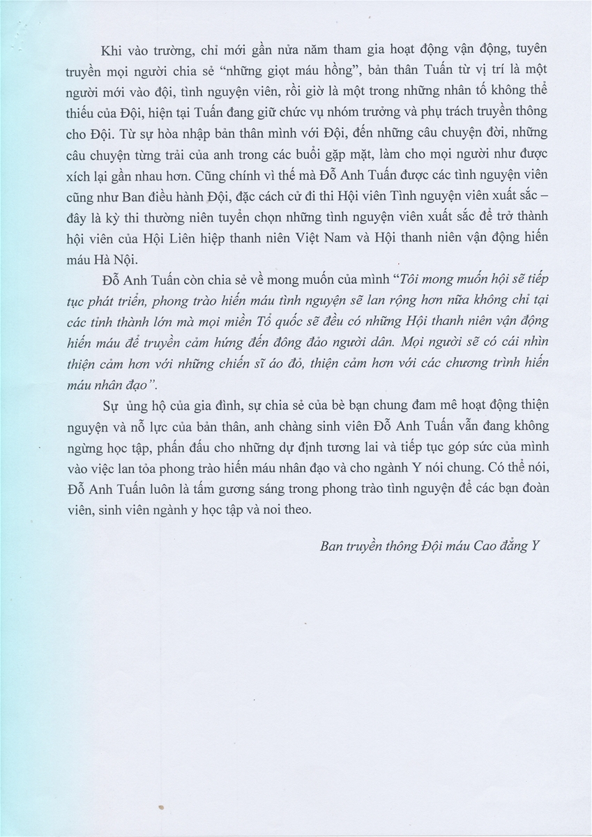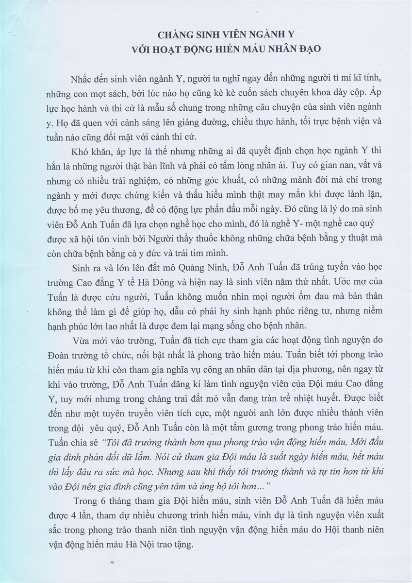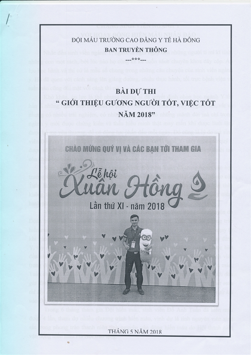 Bài viết dự thi về gương điển hình người tốt việc tốt năm 2018; Đội hiến máu Trường Cao đẳng Y tế Hà Đông; Ban truyền thông