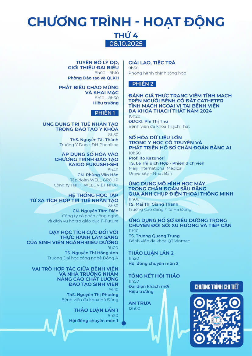 Hướng tới kỷ niệm 65 năm xây dựng và phát triển Trường Cao đẳng Y tế Hà Đông (1960 – 2025), Nhà trường tổ chức Hội thảo khoa học cấp trường năm học 2025 - 2026 vào ngày 08/10/2025 (Thứ Tư) với chủ đề: Chuyển đổi số trong giáo dục và điều trị y khoa