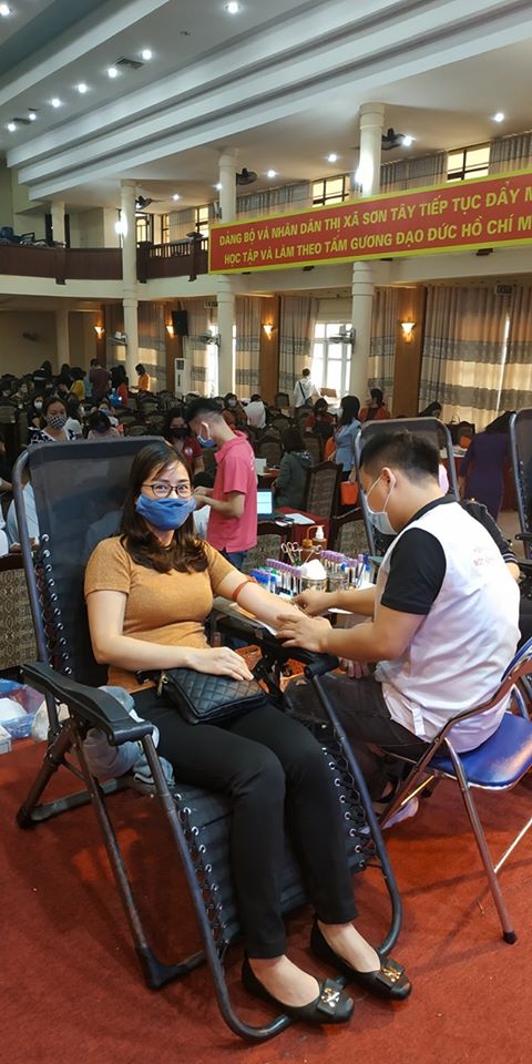 Cô giáo Thảo trong buổi hiến máu cứu người mùa dịch Covid-19