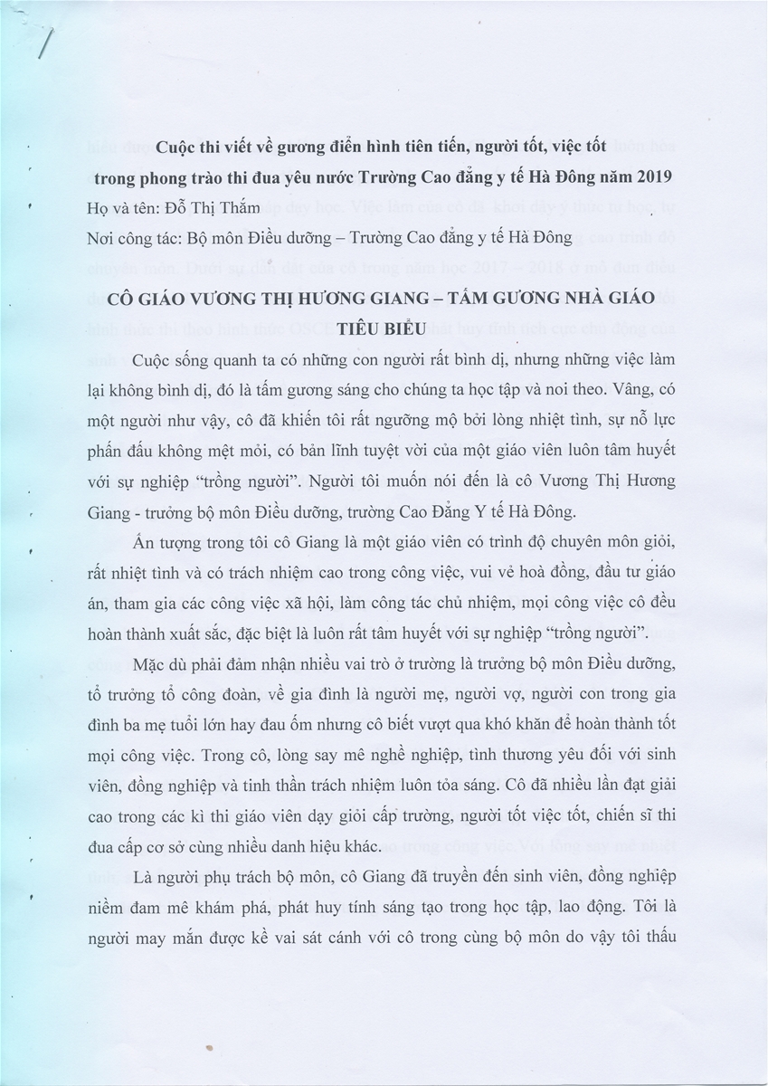 Giải Nhất Cuộc thi Viết về Gương điển hình tiên tiến, người tốt việc tốt của Trường Cao đẳng Y tế Hà Đông năm 2025 (4/23/2025 12:00:00 AM)