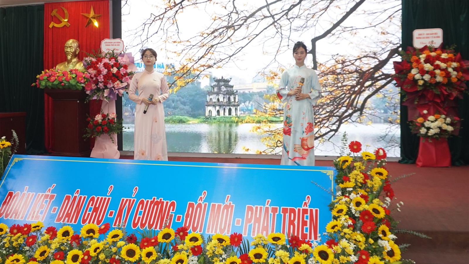 Các đoàn thể trong và ngoài nhà trường đã gửi tặng những lẵng hoa tươi thắm chúc mừng Đại hội, thể hiện sự quan tâm, tin tưởng và đồng hành cùng Công đoàn trường.