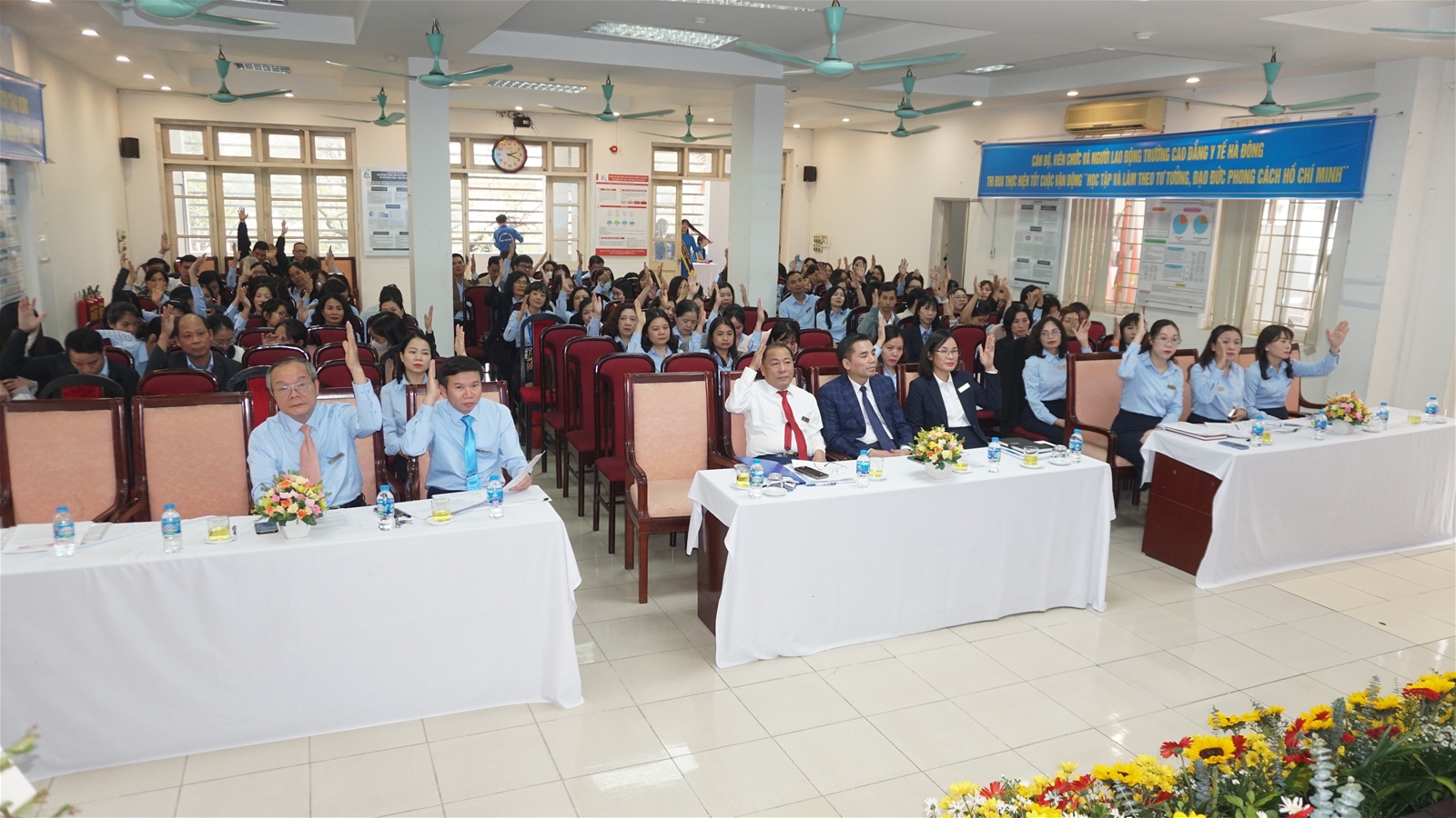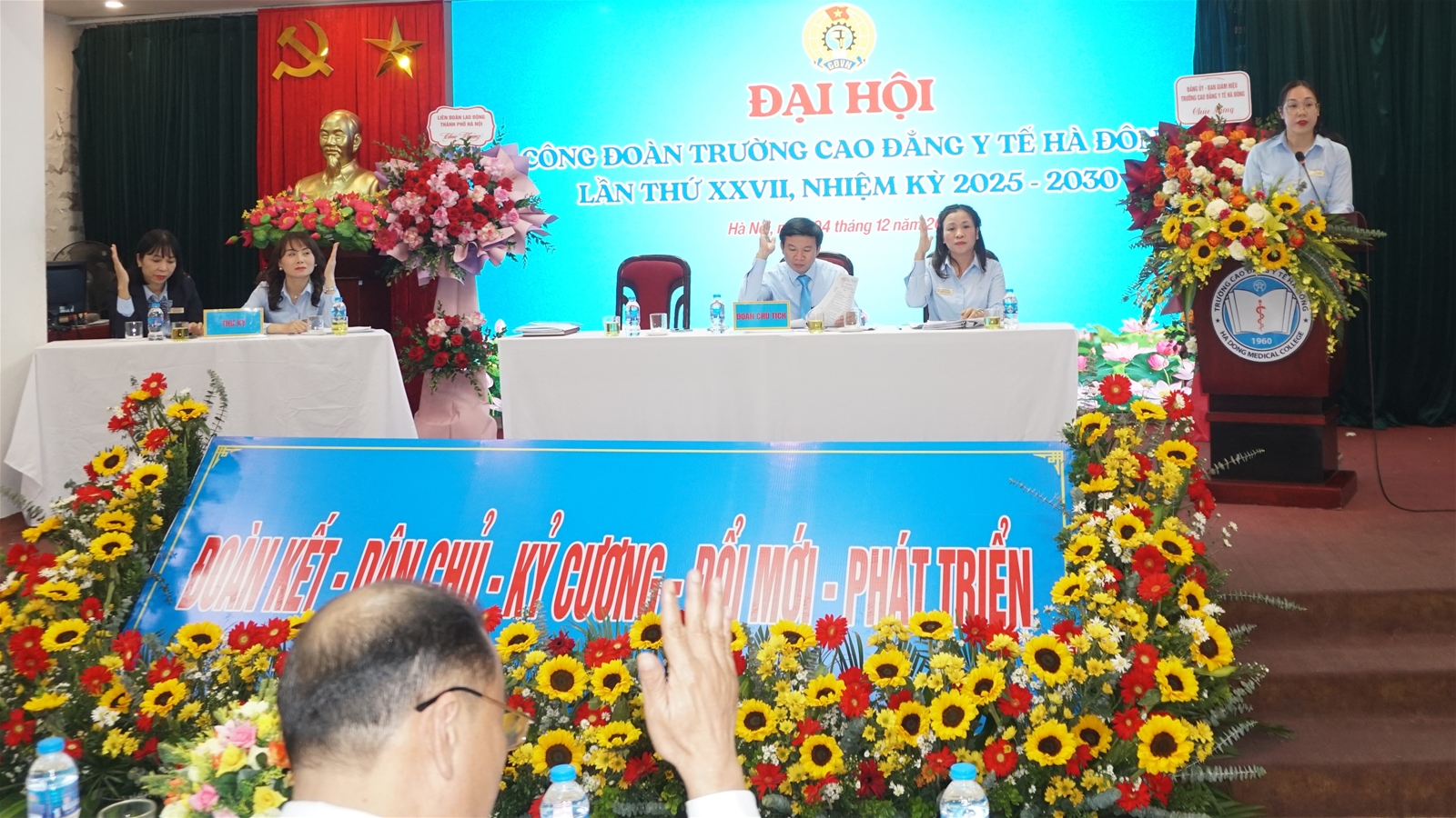 Đại hội đã biểu quyết thông qua toàn văn Nghị quyết Đại hội Công đoàn Trường Cao đẳng Y tế Hà Đông lần thứ XXVII, nhiệm kỳ 2025–2030 với sự nhất trí tuyệt đối.