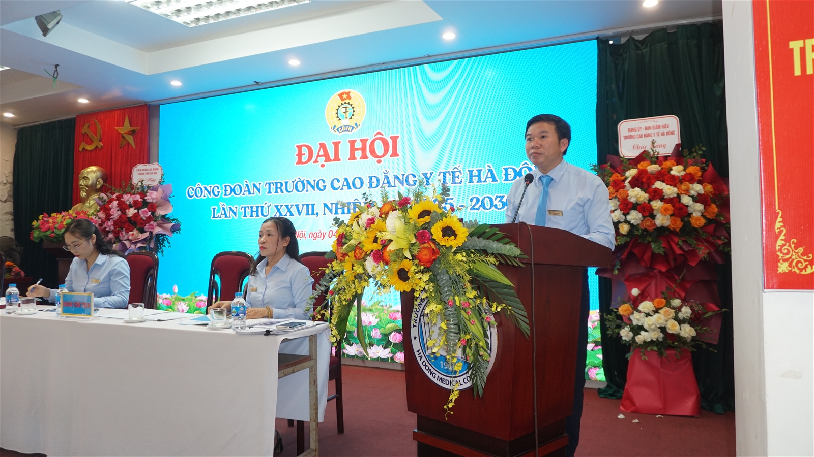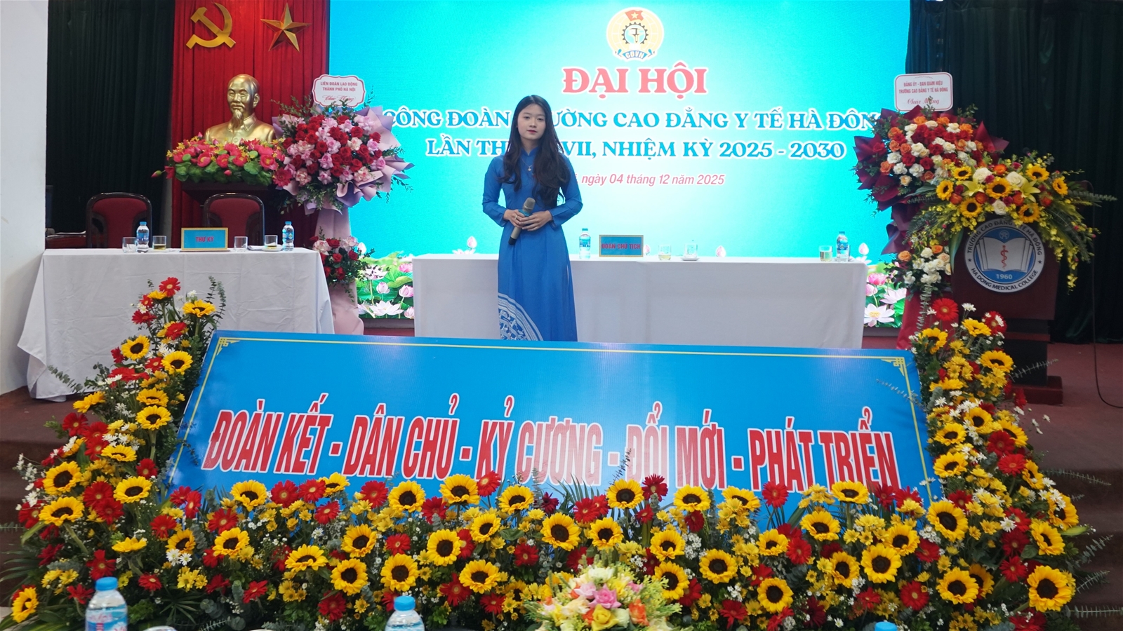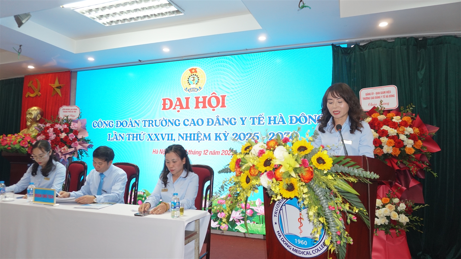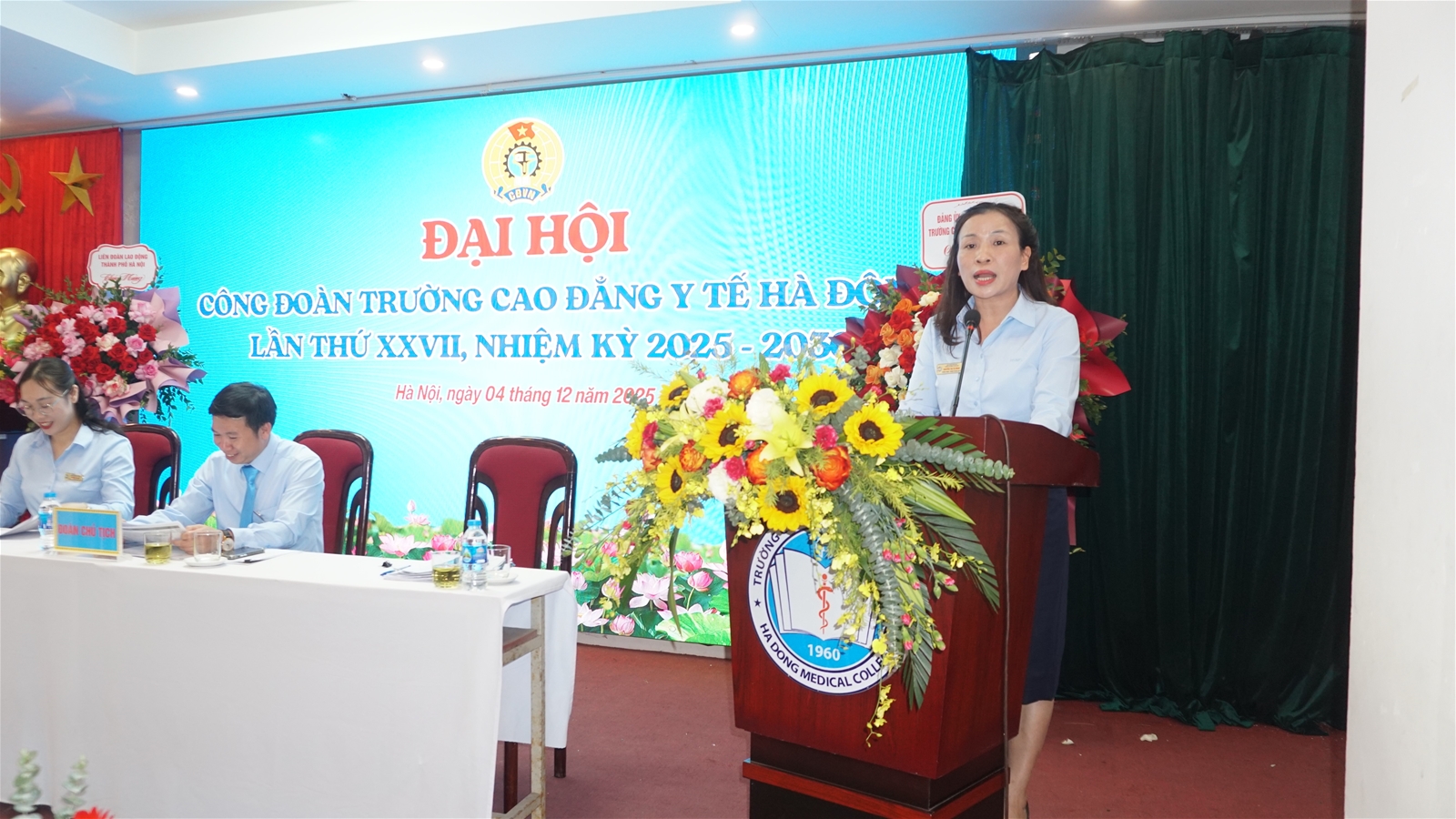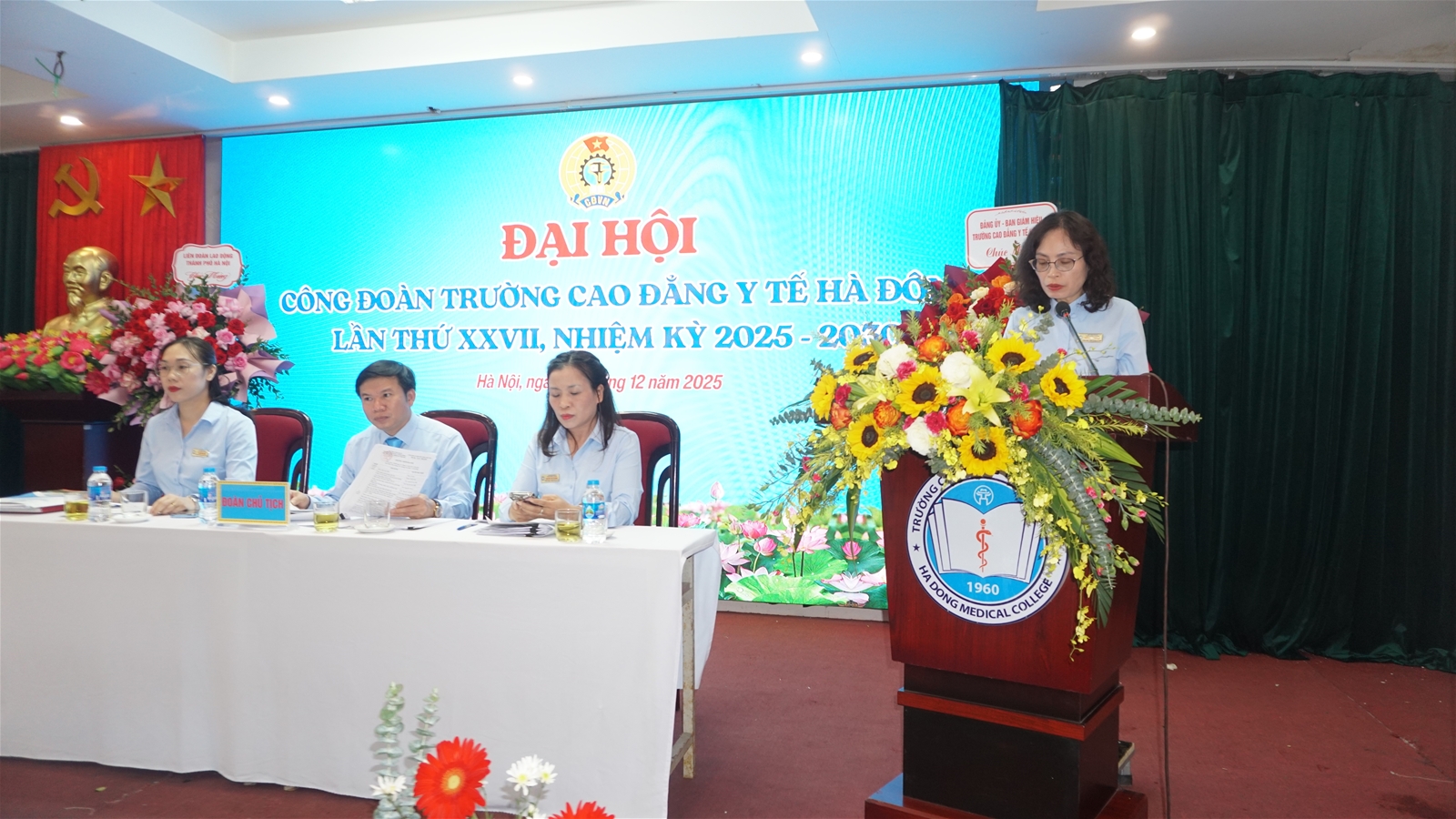 QuôcChiều ngày 04/12/2025, tại Hội trường 203, Trường Cao đẳng Y tế Hà Đông đã long trọng tổ chức Đại hội Công đoàn lần thứ XXVII, nhiệm kỳ 2025 – 2030 với sự tham dự của 120 đại biểu - những đoàn viên ưu tú là cán bộ, giảng viên và người lao động toàn trường. Đại hội diễn ra trong không khí thi đua sôi nổi của công nhân viên chức lao động Thủ đô hướng tới Đại hội Công đoàn thành phố Hà Nội lần thứ XVIII.