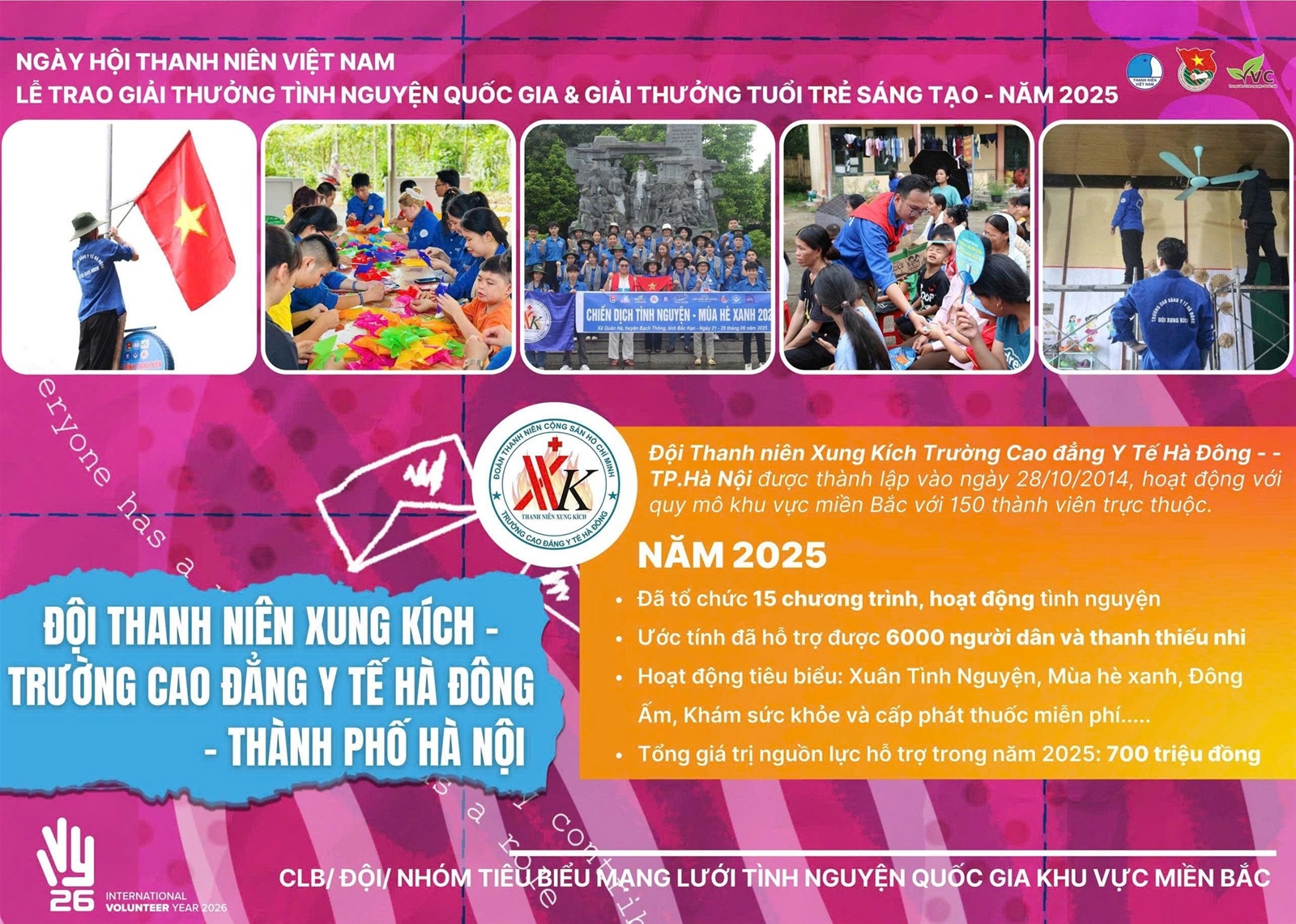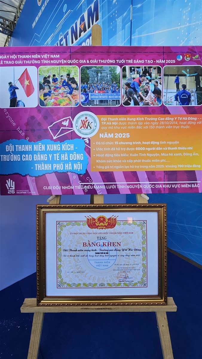 Ngày 07/12/2025, tại Ngày hội Thanh niên Việt Nam 2025 và Lễ trao Giải thưởng Tình nguyện Quốc gia & Tuổi trẻ Sáng tạo, Đội Thanh niên Xung kích Trường Cao đẳng Y tế Hà Đông vinh dự được trao Giải thưởng Tình nguyện Quốc gia năm 2025, ghi nhận những đóng góp nổi bật trong phong trào tình nguyện vì cộng đồng.