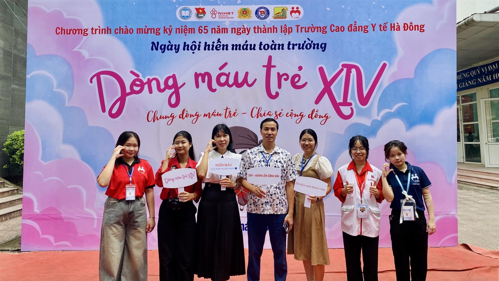 Ngày 24/9/2025, Trường Cao đẳng Y tế Hà Đông đã tổ chức thành công Ngày hội hiến máu toàn trường mang tên “Dòng Máu Trẻ XIV”. Chương trình do Đoàn Thanh niên phối hợp với Viện Huyết học - Truyền máu Trung ương tổ chức, thu hút sự tham gia nhiệt tình của cán bộ, giảng viên và đông đảo sinh viên trong toàn trường. Đây là một trong những hoạt động ý nghĩa nằm trong chuỗi sự kiện hướng tới kỷ niệm 65 năm ngày thành lập Trường (26/10/1960 – 26/10/2025).