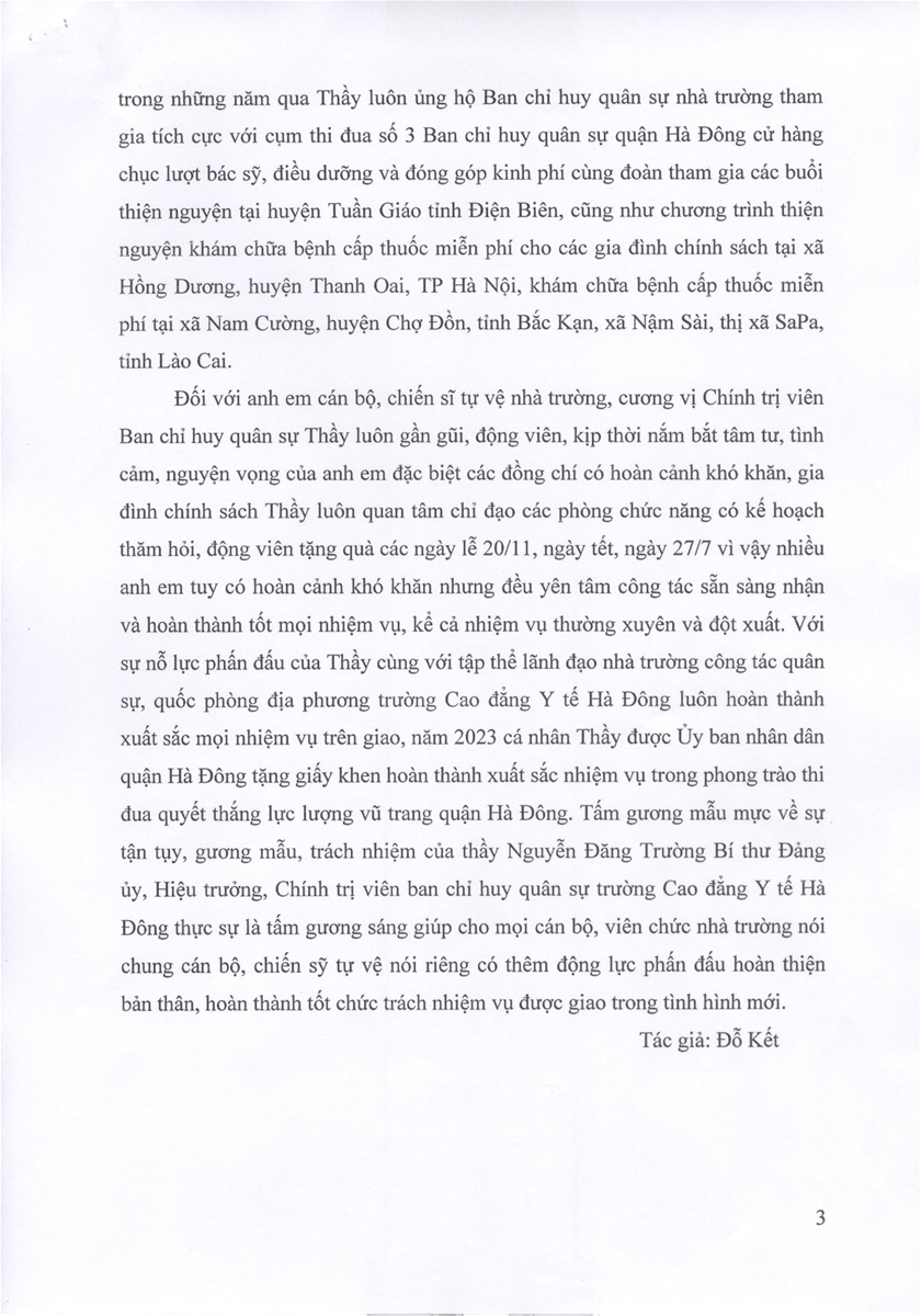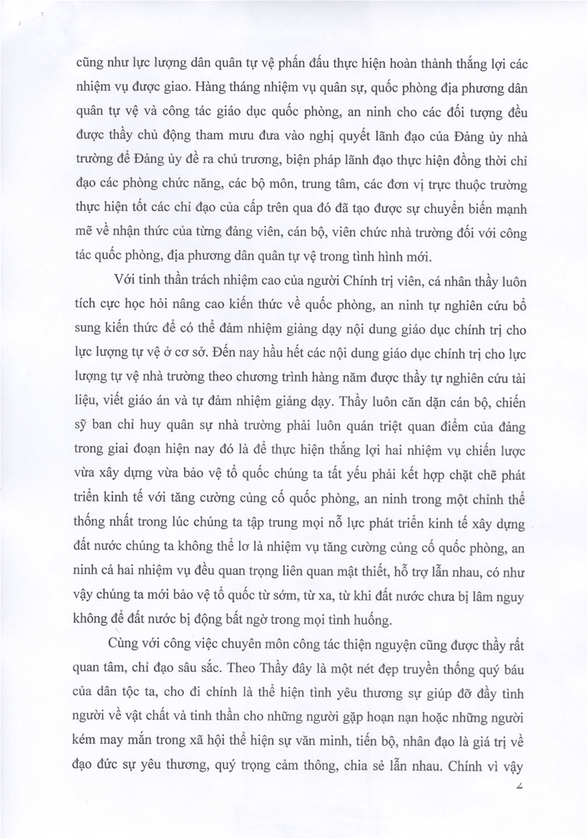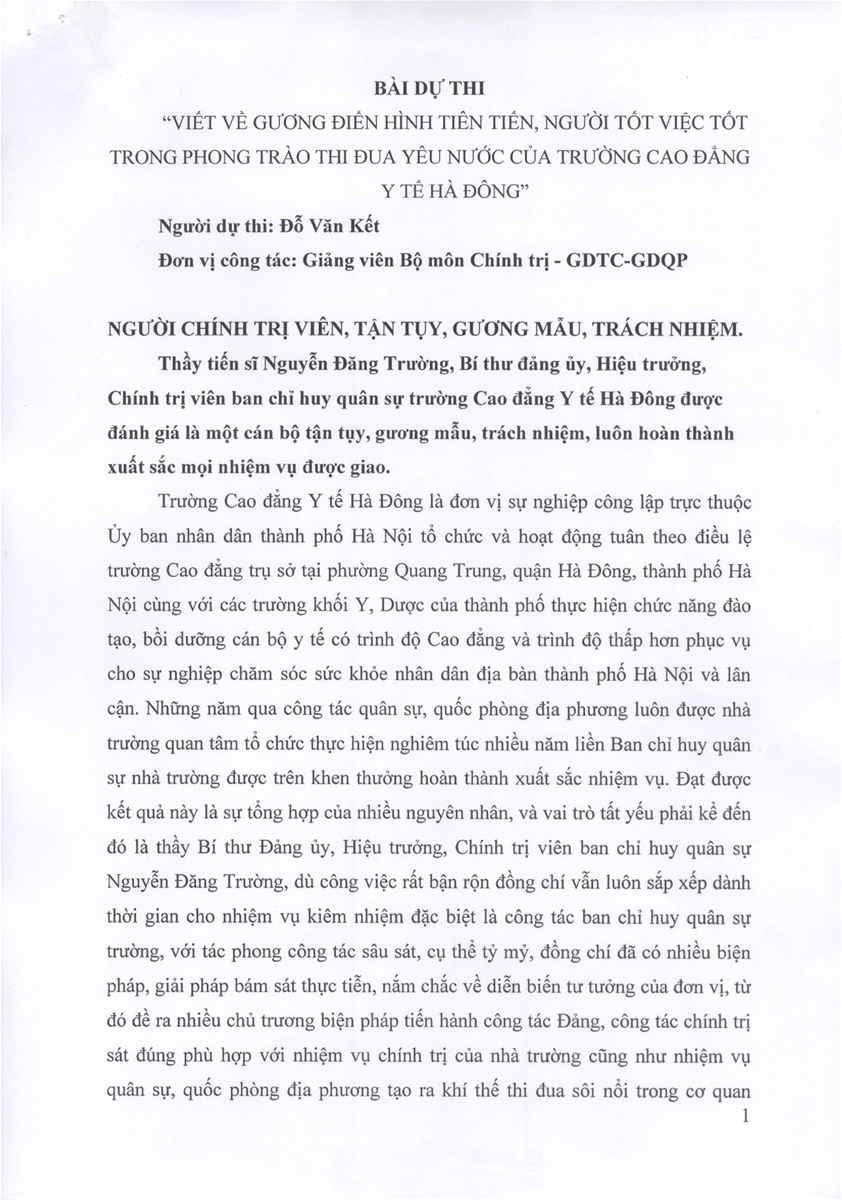 Bài dự thi: Người chính trị viên tận tụy, gương mẫu, trách nhiệm - Tác giả: Đỗ Văn Kết - Bộ môn Chính trị - GDTC - GDQP