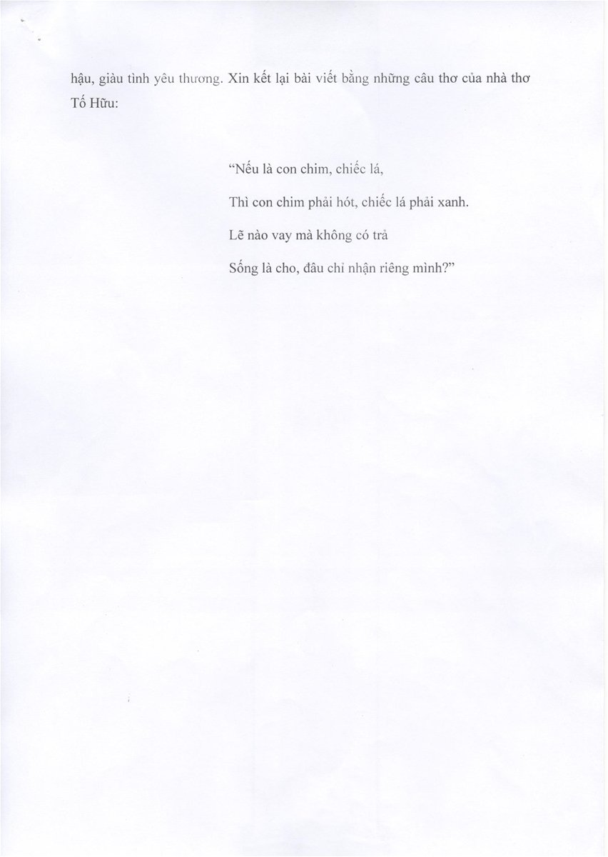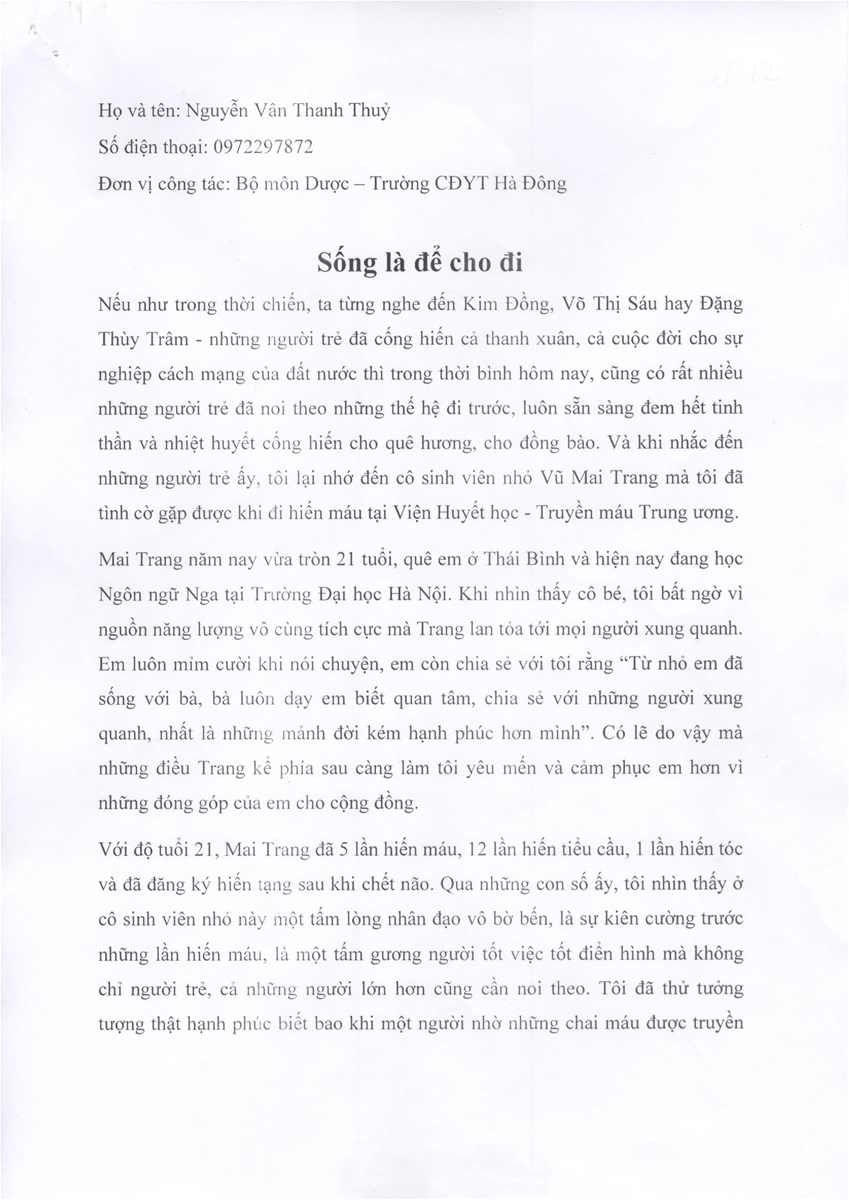 Bài dự thi: Sống là để cho đi - Tác giả: Nguyễn Vân Thanh Thủy - Bộ môn Dược