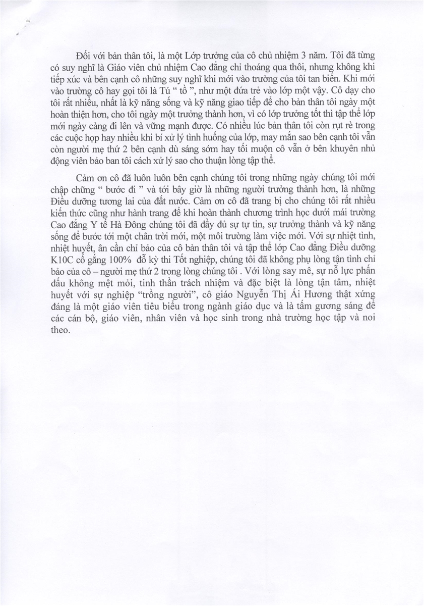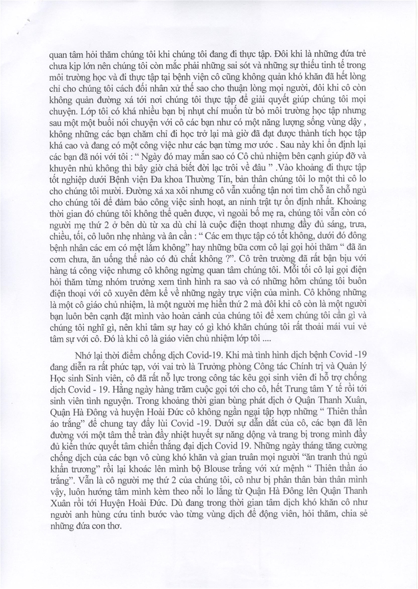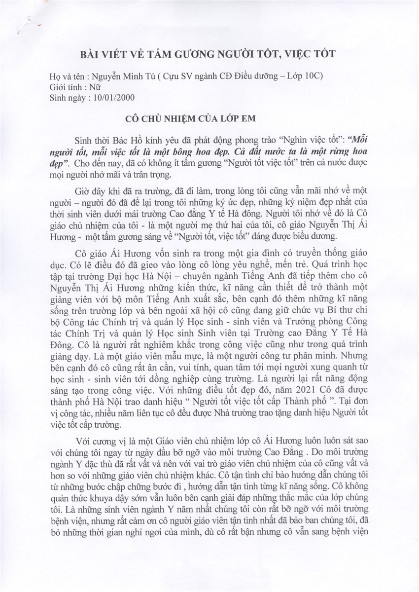 Bài dự thi: Cô chủ nhiệm của lớp em - Tác giả: Nguyễn Minh Tú (Cựu Sinh viên ngành CĐ Điều Dưỡng - Lớp 10C)