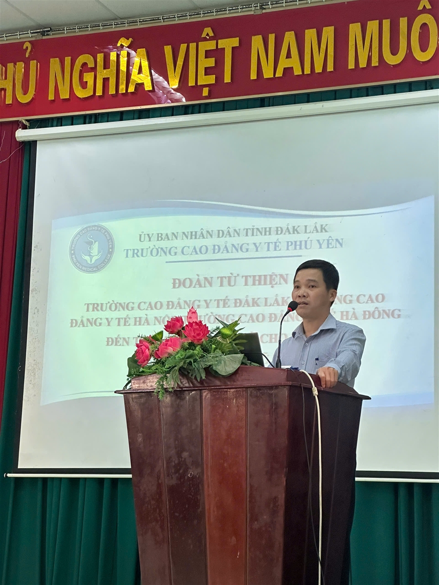 Thầy Lê Thanh Hồng – Phó Hiệu trưởng phụ trách Trường Cao đẳng Y tế Phú Yên phát biểu cám ơn Đoàn từ thiện