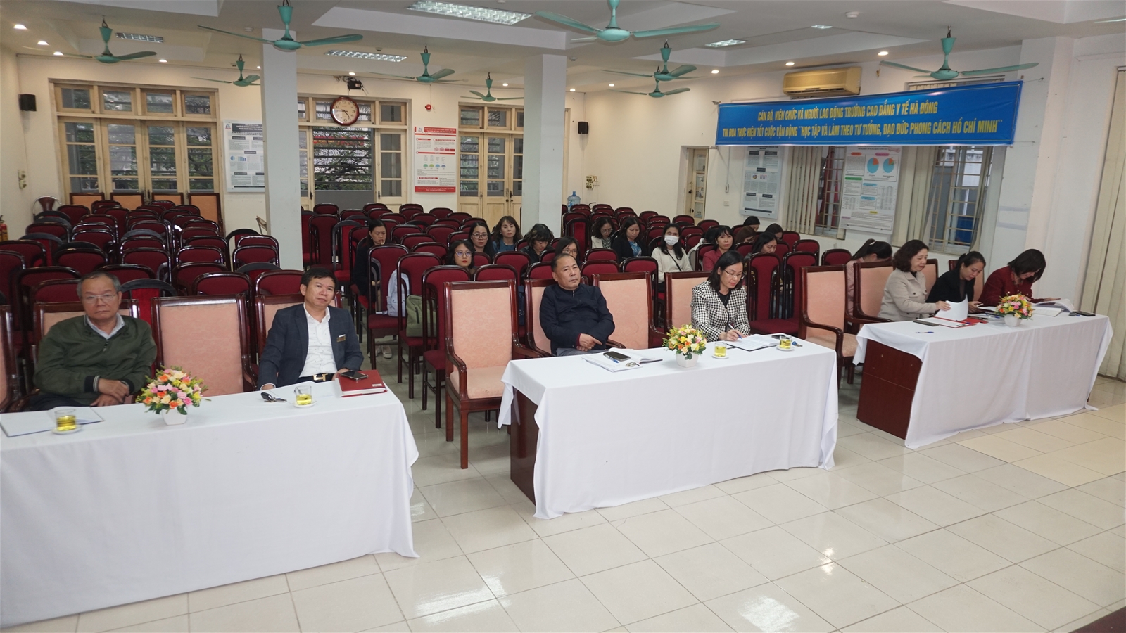 Hội nghị với sự tham dự của Đảng ủy, Ban Giám hiệu nhà trường gồm TS. Lê Thị Thu Trang – Bí thư Đảng ủy, Chủ tịch HĐ trường, Phó Hiệu trưởng; TS. Nguyễn Đăng Trường – Hiệu trưởng, Phó Bí thư Đảng Ủy; ThS. Nguyễn Văn Lệ – Đảng ủy viên, Phó Hiệu trưởng; Phòng Công tác chính trị và Quản lý HSSV, các phòng ban liên quan cùng trưởng, phó các bộ môn, đơn vị trong trường.