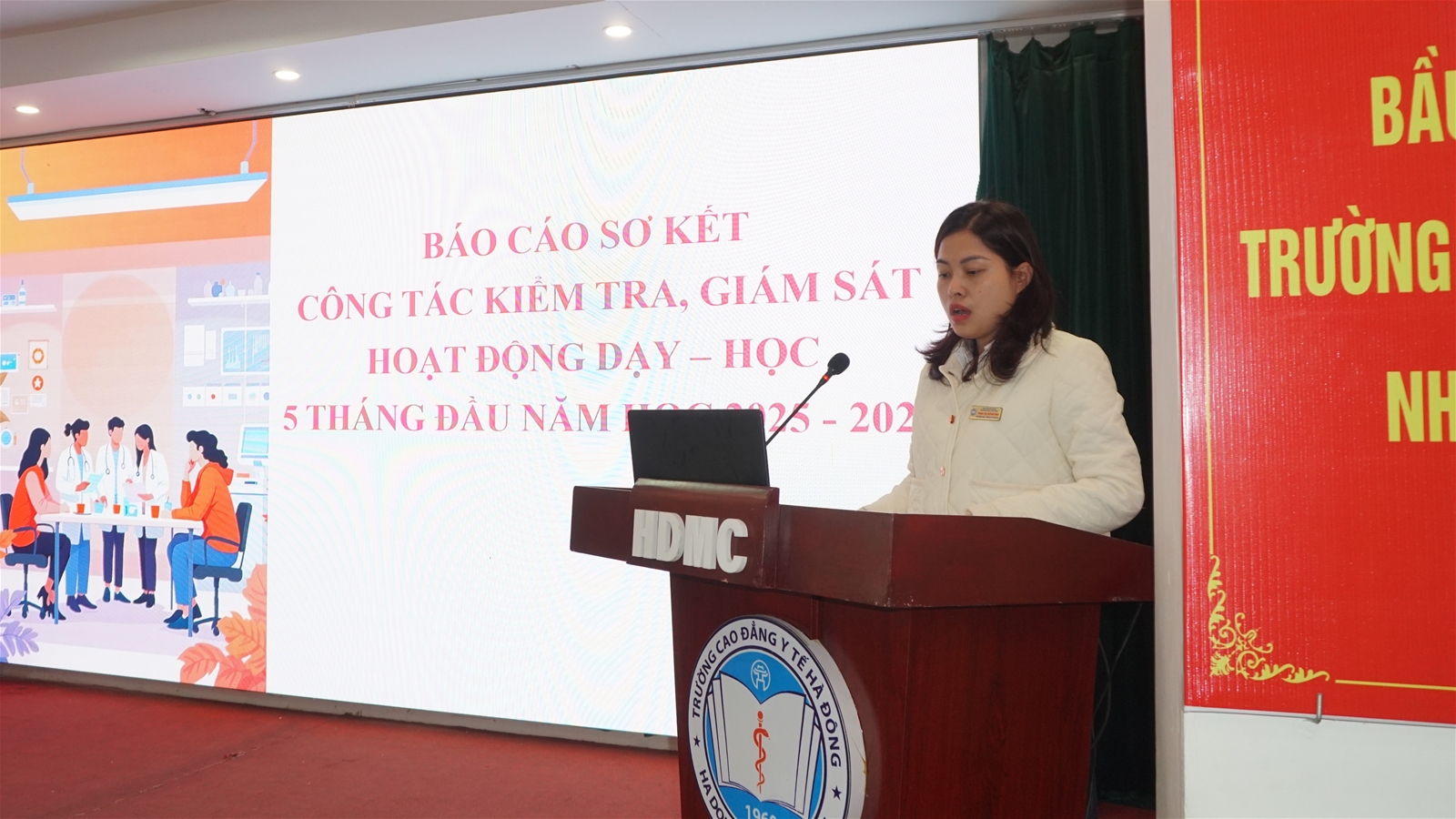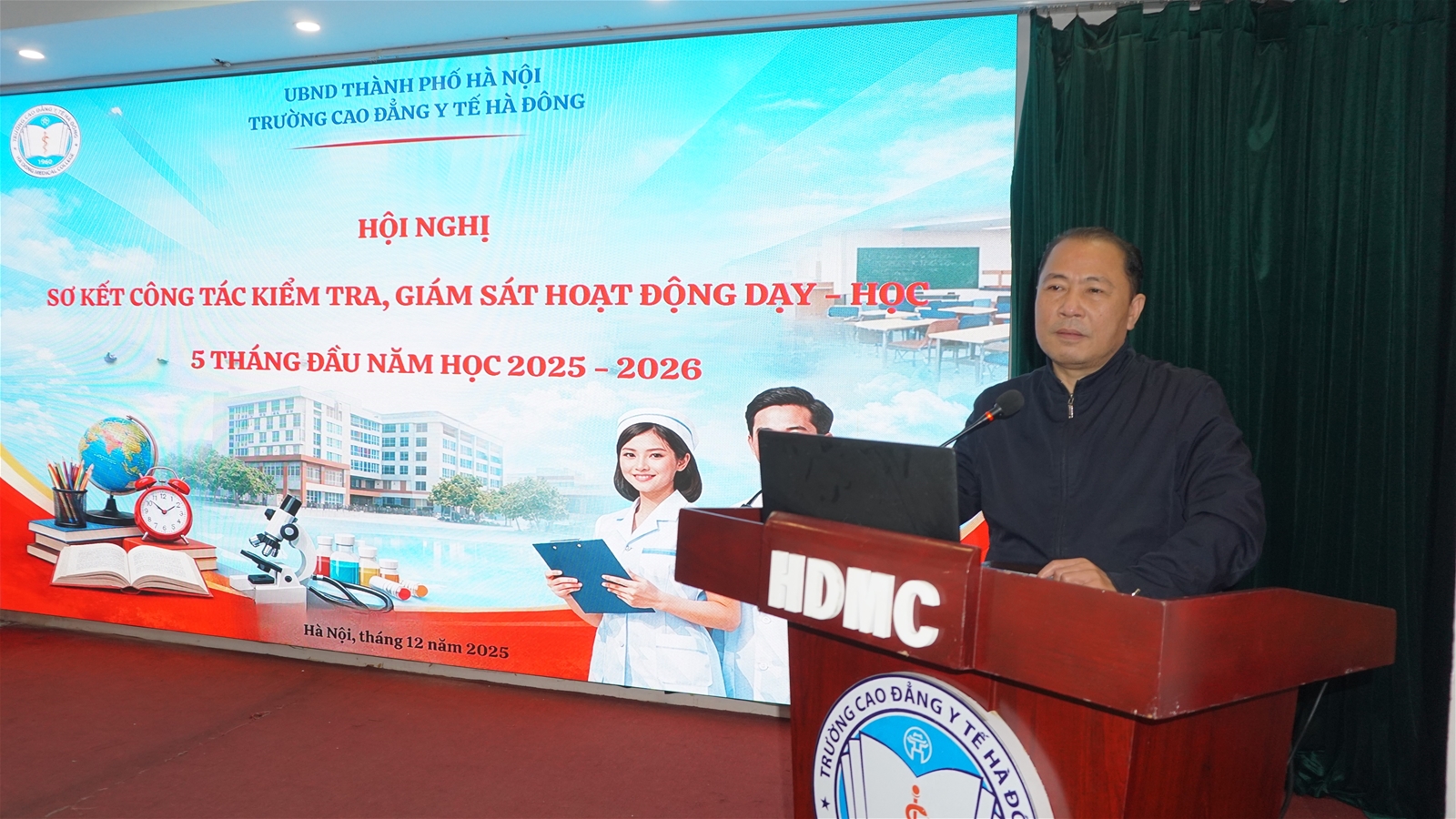 Thực hiện Kế hoạch số 281/KH-CĐYT ngày 01/8/2025 của Trường Cao đẳng Y tế Hà Đông về việc tổ chức kiểm tra, giám sát hoạt động dạy – học, Nhà trường đã tổ chức Hội nghị Sơ kết công tác kiểm tra, giám sát hoạt động dạy – học 5 tháng đầu năm học 2025 – 2026.