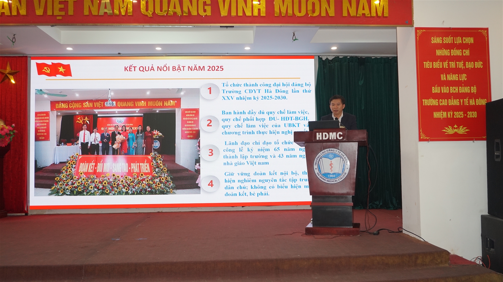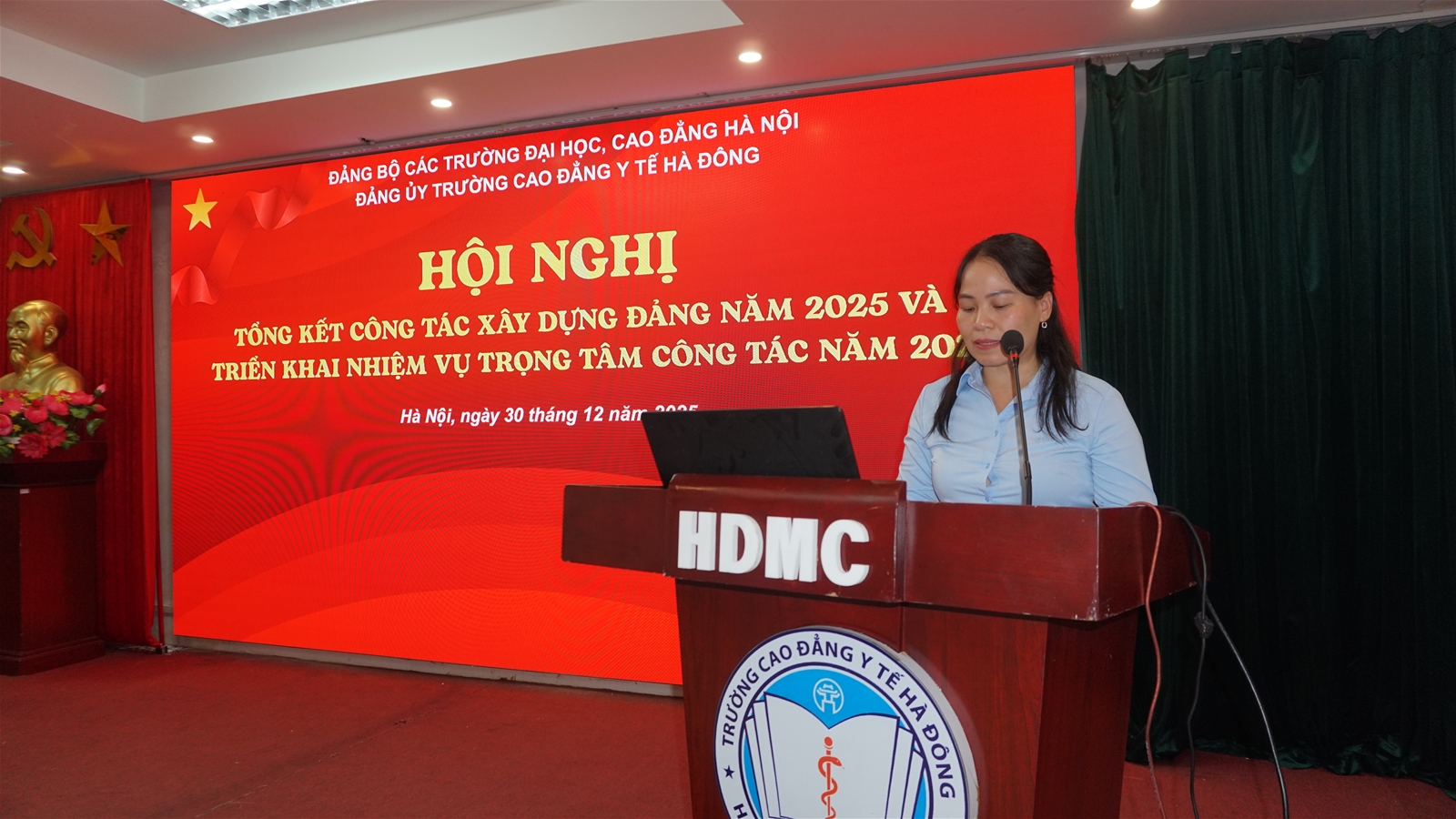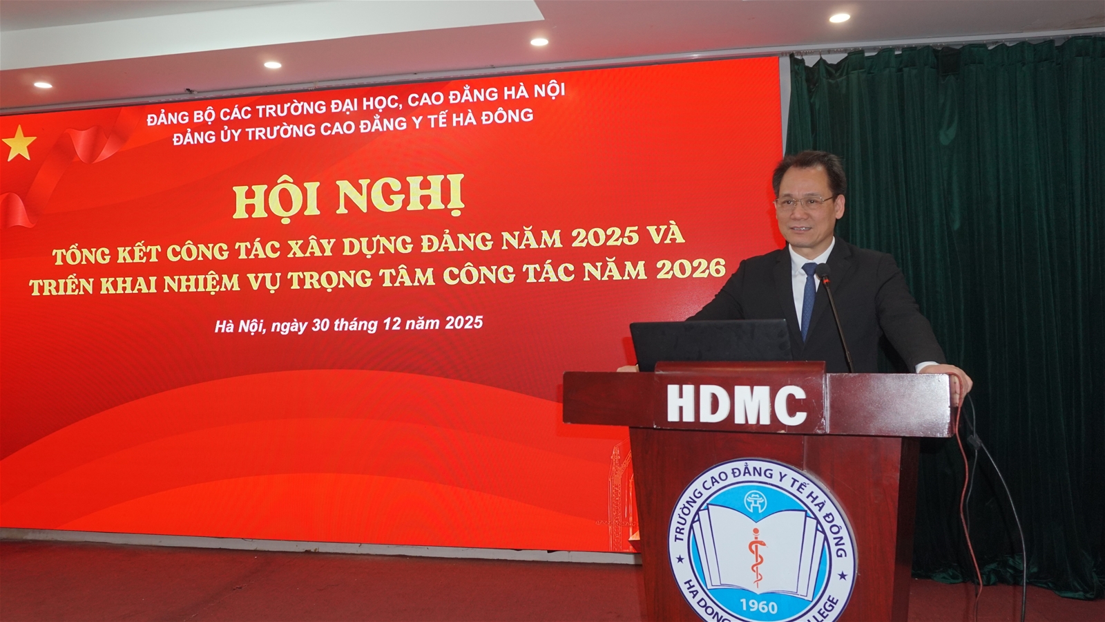 Ngày 30/12/2025, Đảng ủy Trường Cao đẳng Y tế Hà Đông đã long trọng tổ chức Hội nghị tổng kết công tác xây dựng Đảng năm 2025 và triển khai nhiệm vụ trọng tâm công tác năm 2026.