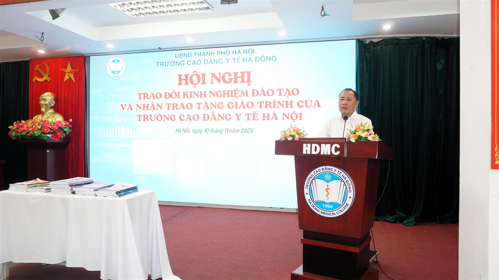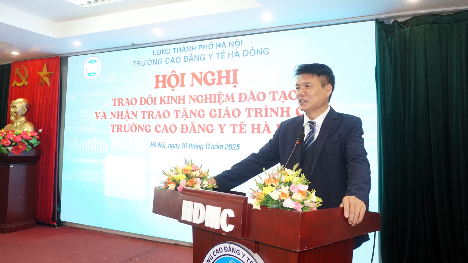 Đại diện Trường Cao đẳng Y tế Hà Đông, TS. Nguyễn Đăng Trường – Phó Bí thư Đảng ủy, Hiệu trưởng nhà trường, đã phát biểu cảm ơn sự quan tâm, hỗ trợ và chia sẻ chân thành từ Trường Cao đẳng Y tế Hà Nội. Thầy khẳng định, những nội dung, kinh nghiệm và tài liệu được trao đổi tại hội nghị sẽ là nguồn tư liệu quý giúp Trường Cao đẳng Y tế Hà Đông tiếp tục nâng cao chất lượng đào tạo, đáp ứng tốt hơn yêu cầu của xã hội và người học.