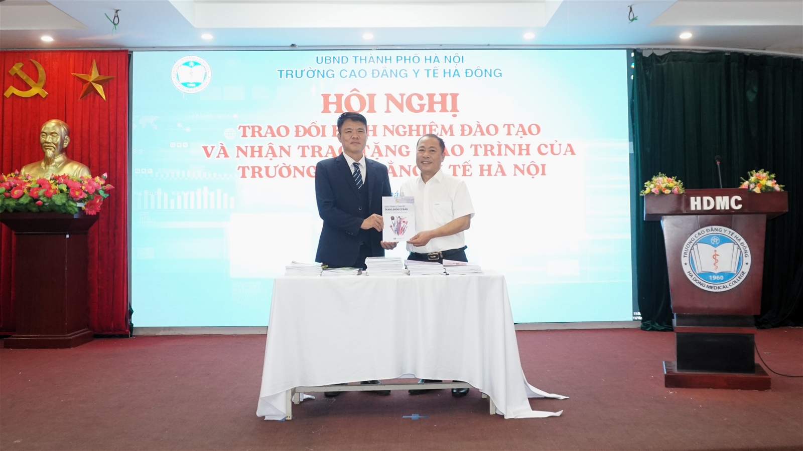 Nhân dịp này, Trường Cao đẳng Y tế Hà Nội cũng trao tặng Trường Cao đẳng Y tế Hà Đông nhiều giáo trình, trong đó có bộ giáo trình đào tạo ngành Chăm sóc sắc đẹp và ngành Kỹ thuật Vật lý trị liệu & Phục hồi chức năng – những tài liệu có giá trị thực tiễn cao, góp phần hỗ trợ hiệu quả cho công tác giảng dạy và học tập tại nhà trường.