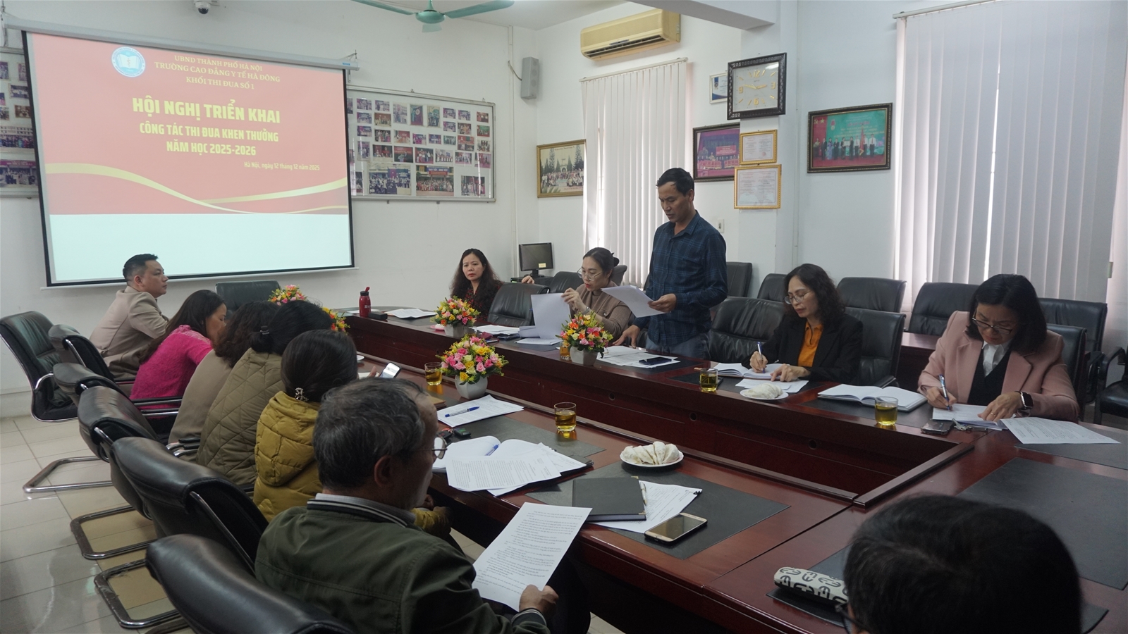Chiều ngày 12/12/2025, tại Hội trường 607 – Khu nhà 7 tầng, Trường Cao đẳng Y tế Hà Đông đã tổ chức Hội nghị triển khai công tác thi đua, khen thưởng năm học 2025 – 2026 của Khối thi đua số 1.