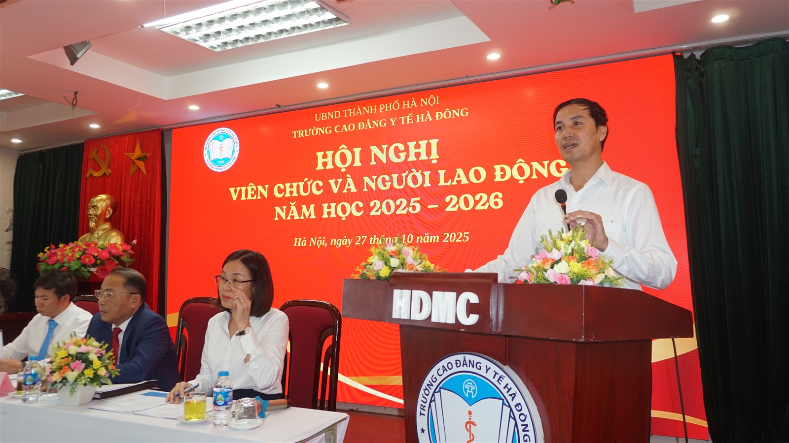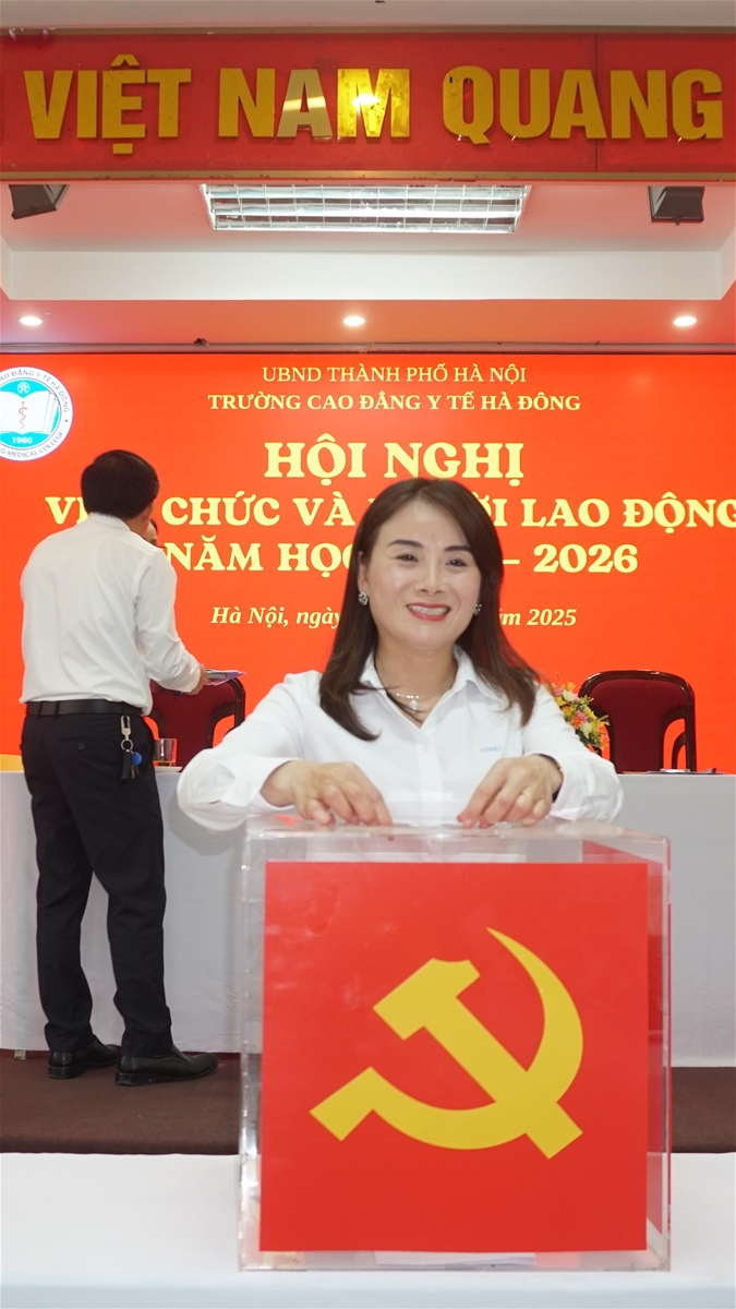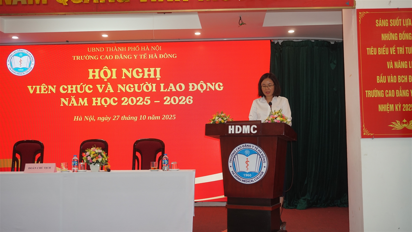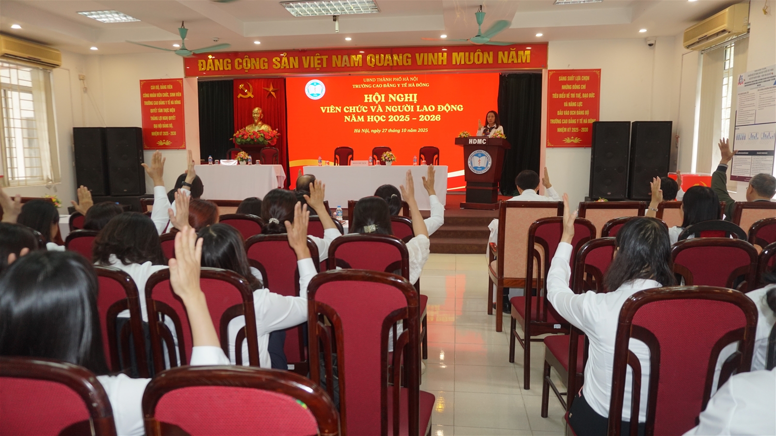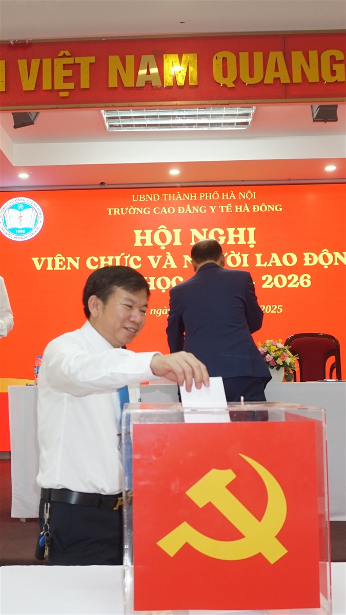 Hội nghị viên chức, người lao động Trường Cao đẳng Y tế Hà Đông năm học 2025 – 2026 đã diễn ra nghiêm túc, dân chủ và thành công tốt đẹp. Đây là dịp để mỗi cán bộ, giảng viên, người lao động nhìn lại một năm công tác, đồng thời khẳng định quyết tâm xây dựng tập thể sư phạm nhà trường đoàn kết, trách nhiệm, sáng tạo, góp phần thực hiện thắng lợi nhiệm vụ năm học mới.