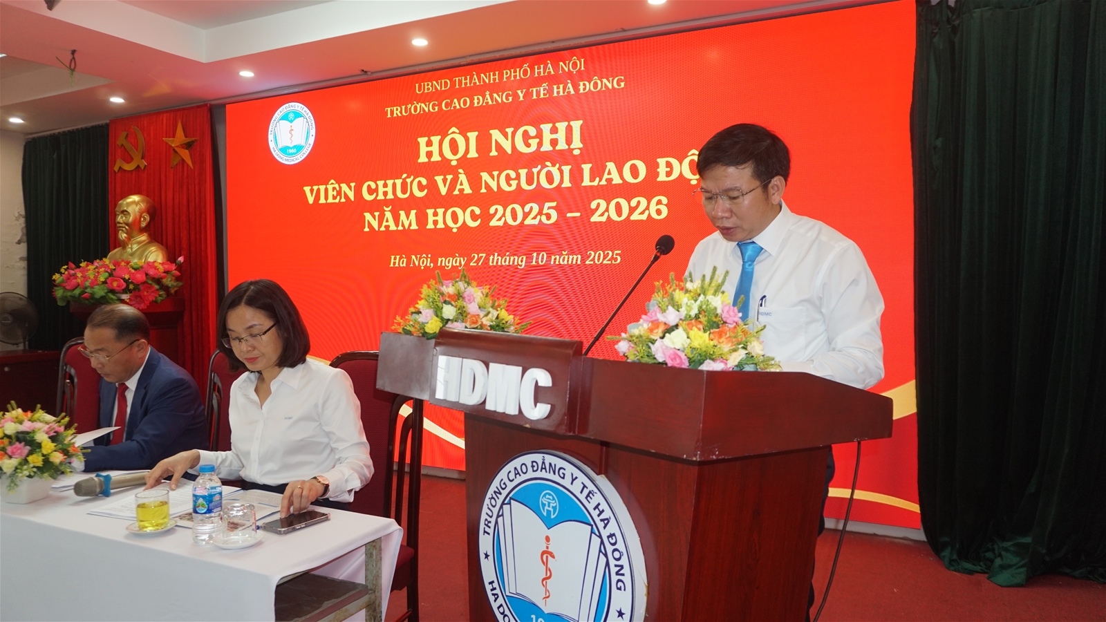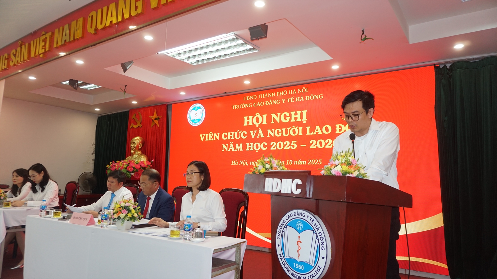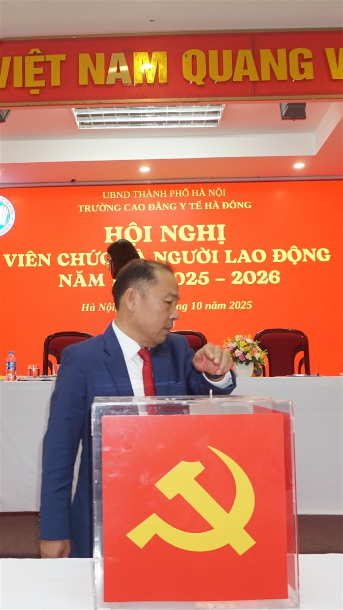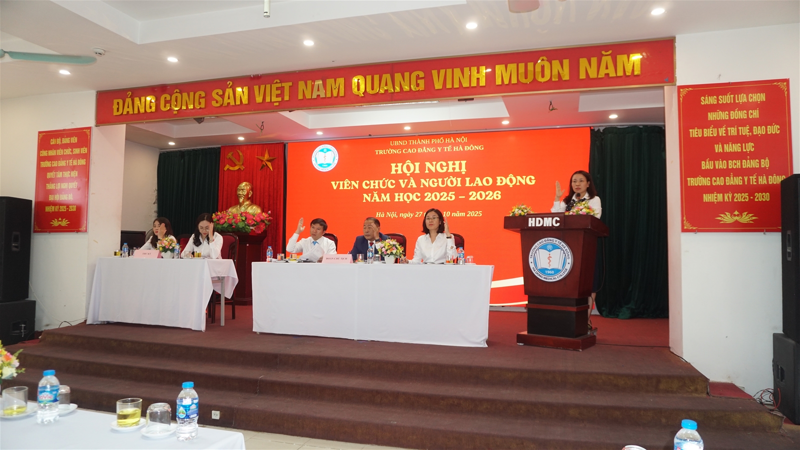 Hội nghị viên chức, người lao động Trường Cao đẳng Y tế Hà Đông năm học 2025 – 2026 đã diễn ra nghiêm túc, dân chủ và thành công tốt đẹp. Đây là dịp để mỗi cán bộ, giảng viên, người lao động nhìn lại một năm công tác, đồng thời khẳng định quyết tâm xây dựng tập thể sư phạm nhà trường đoàn kết, trách nhiệm, sáng tạo, góp phần thực hiện thắng lợi nhiệm vụ năm học mới.