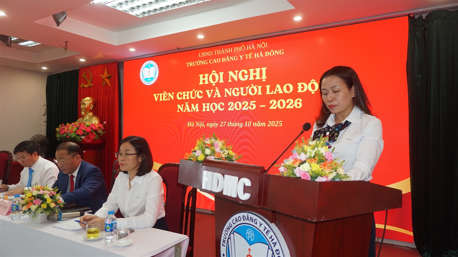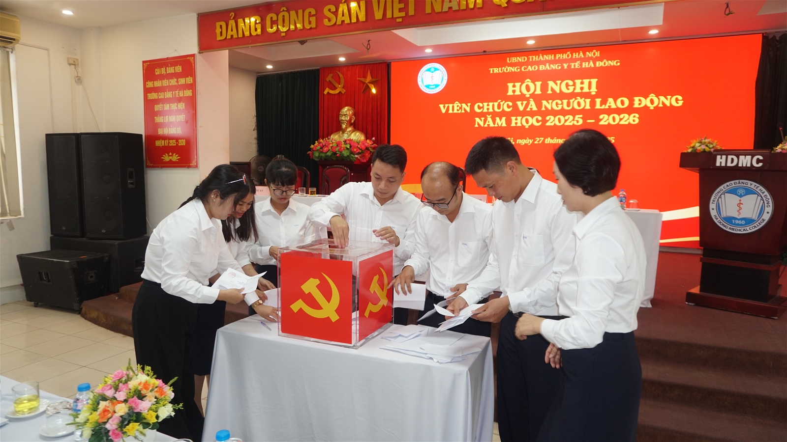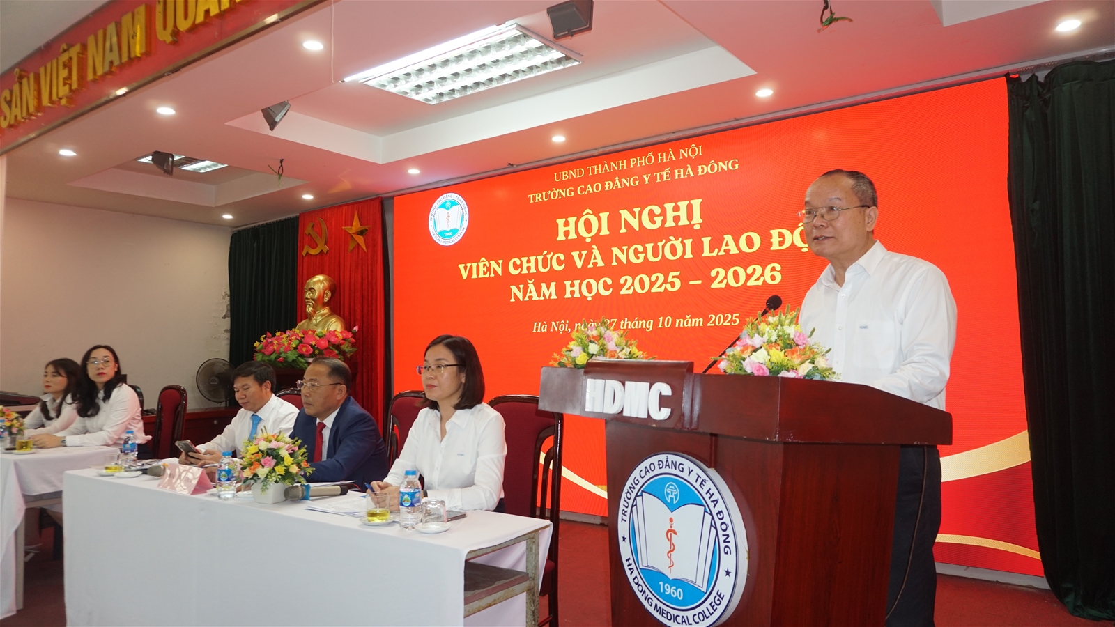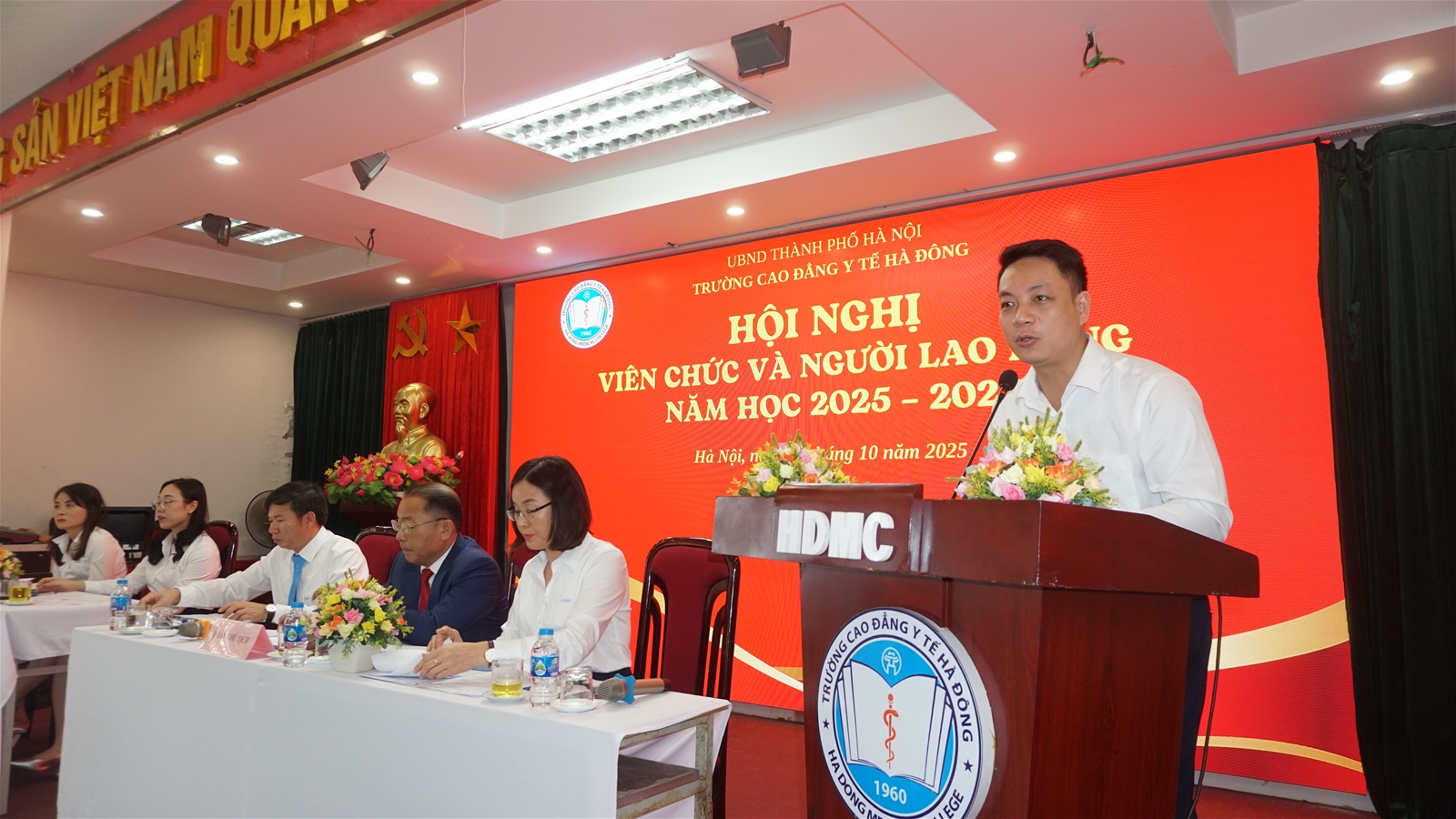 Hội nghị viên chức, người lao động Trường Cao đẳng Y tế Hà Đông năm học 2025 – 2026 đã diễn ra nghiêm túc, dân chủ và thành công tốt đẹp. Đây là dịp để mỗi cán bộ, giảng viên, người lao động nhìn lại một năm công tác, đồng thời khẳng định quyết tâm xây dựng tập thể sư phạm nhà trường đoàn kết, trách nhiệm, sáng tạo, góp phần thực hiện thắng lợi nhiệm vụ năm học mới.