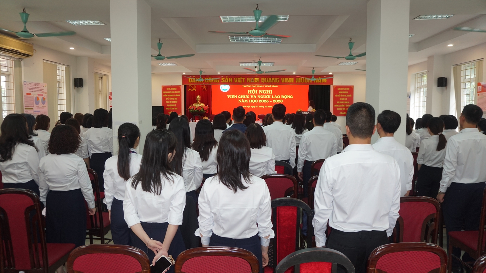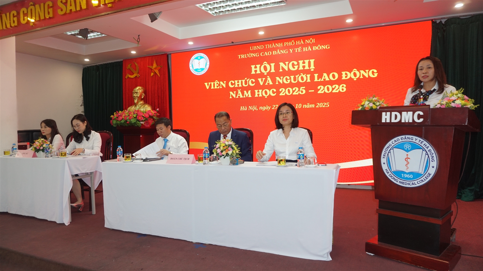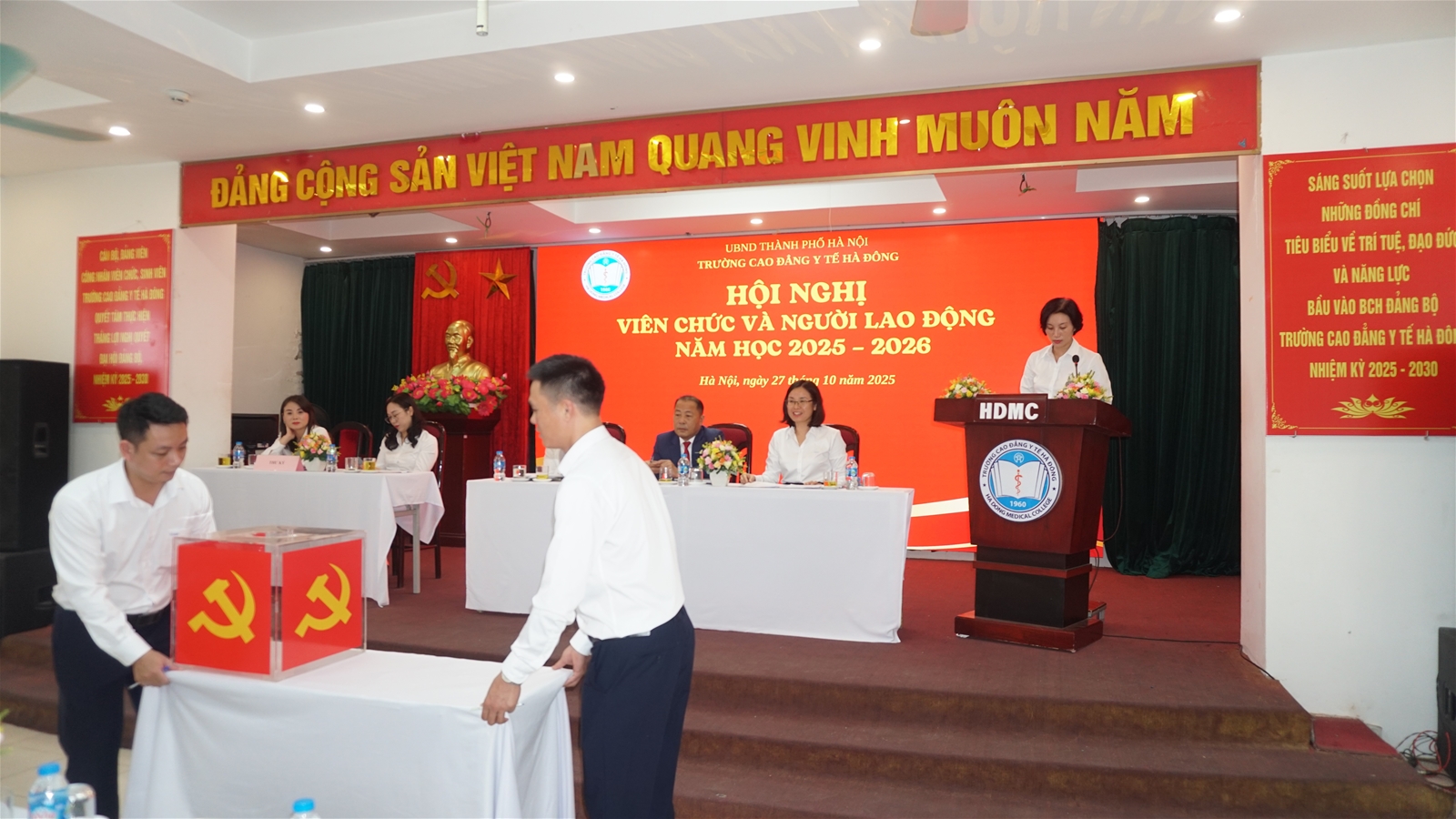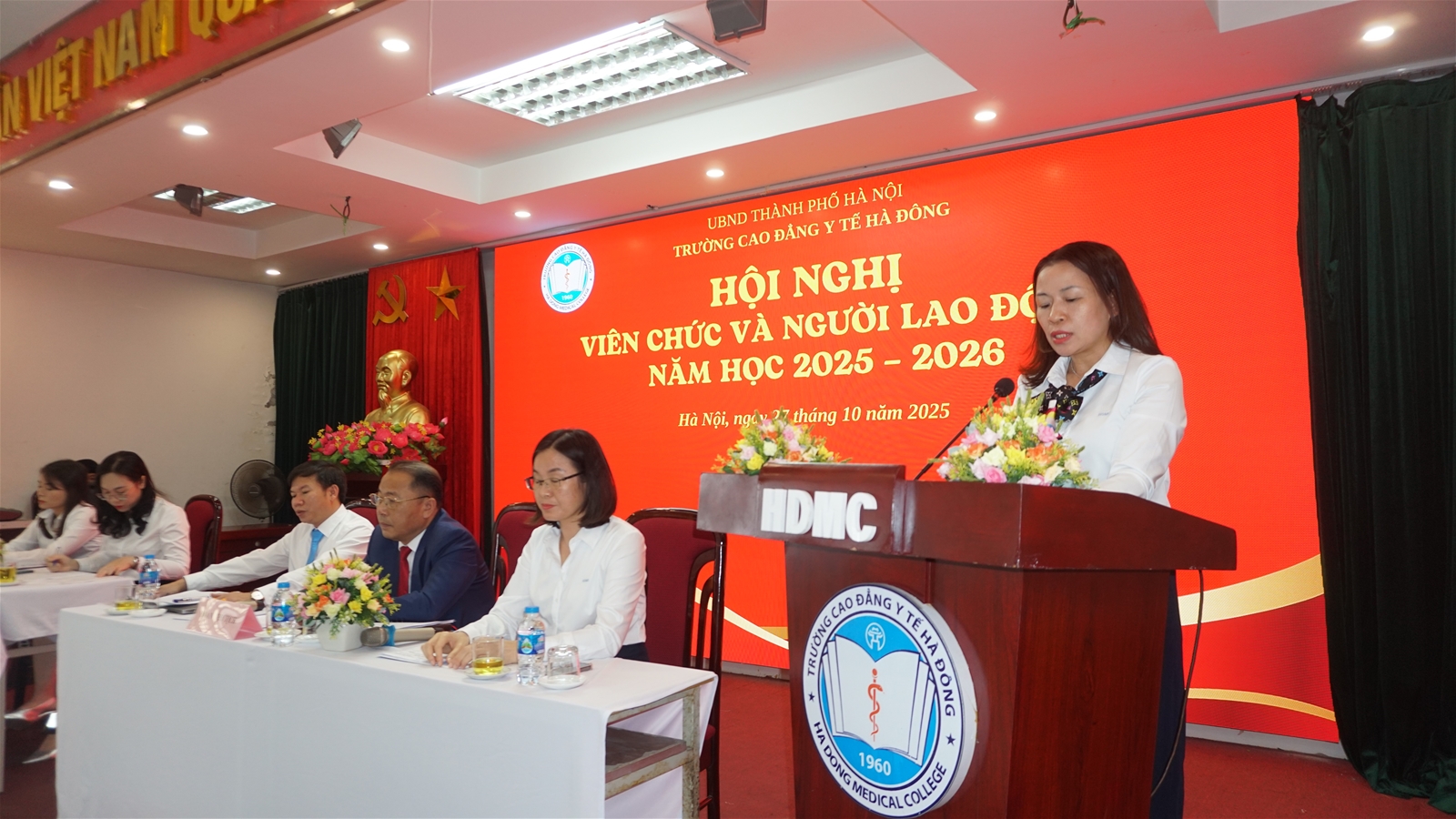 Hội nghị viên chức, người lao động Trường Cao đẳng Y tế Hà Đông năm học 2025 – 2026 đã diễn ra nghiêm túc, dân chủ và thành công tốt đẹp. Đây là dịp để mỗi cán bộ, giảng viên, người lao động nhìn lại một năm công tác, đồng thời khẳng định quyết tâm xây dựng tập thể sư phạm nhà trường đoàn kết, trách nhiệm, sáng tạo, góp phần thực hiện thắng lợi nhiệm vụ năm học mới.