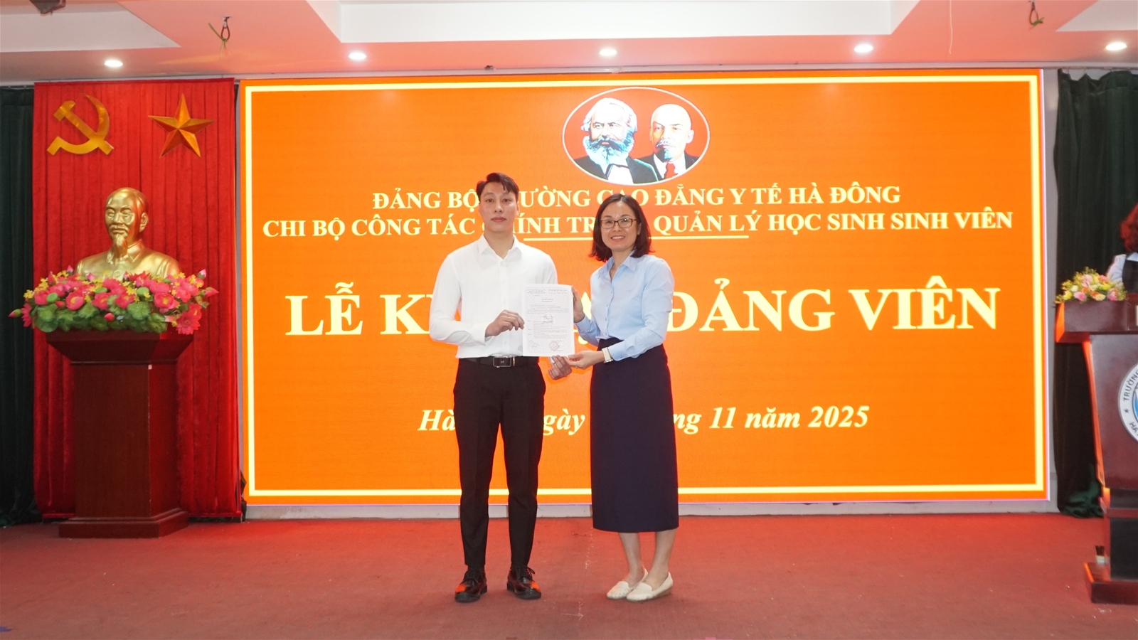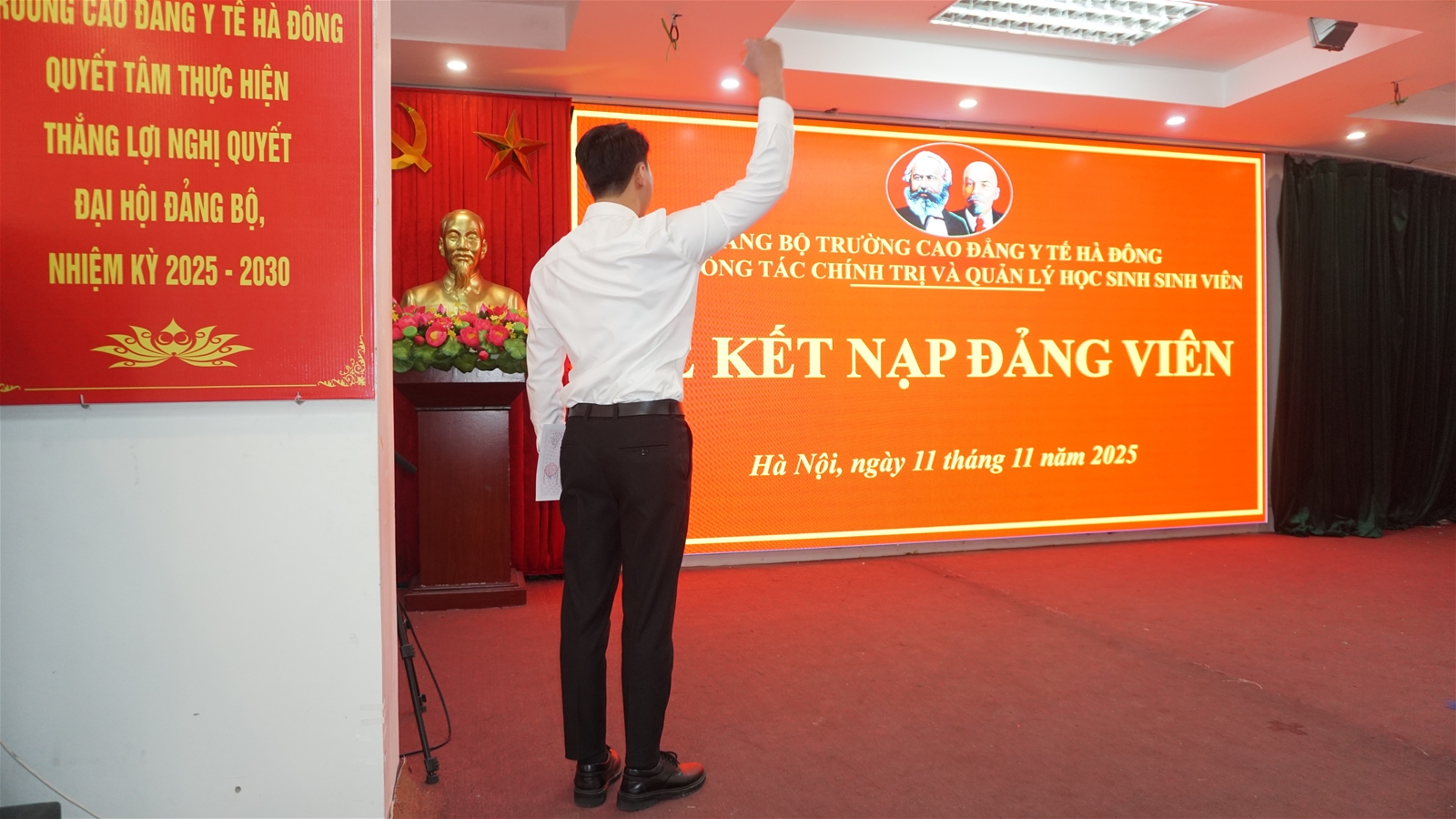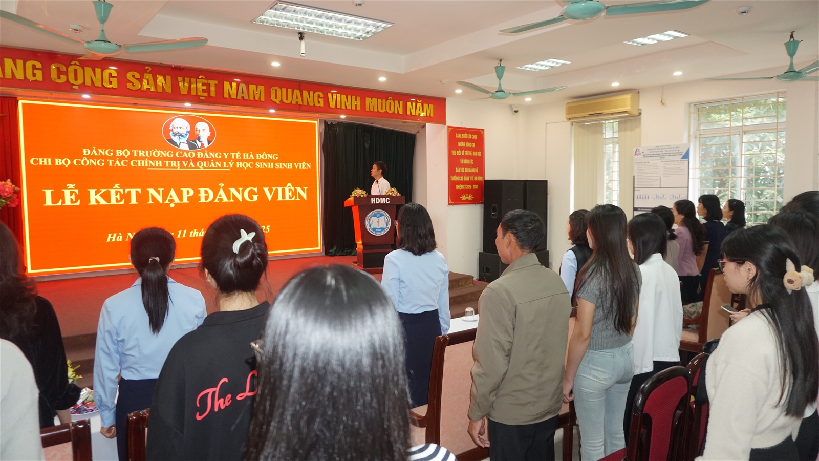 Thực hiện Quyết định của Ban thường vụ Đảng ủy Khối các trường Đại học - Cao đẳng Hà Nội, được sự đồng ý của Đảng ủy Trường Cao đẳng Y tế Hà Đông, ngày 11/11/2025, Chi bộ Công tác chính trị và Quản lý HSSV đã tổ chức Lễ kết nạp Đảng viên mới cho 02 quần chúng ưu tú, nhiệt tình hăng hái tham gia các hoạt động của Nhà trường và đạt thành tích học tập tốt.