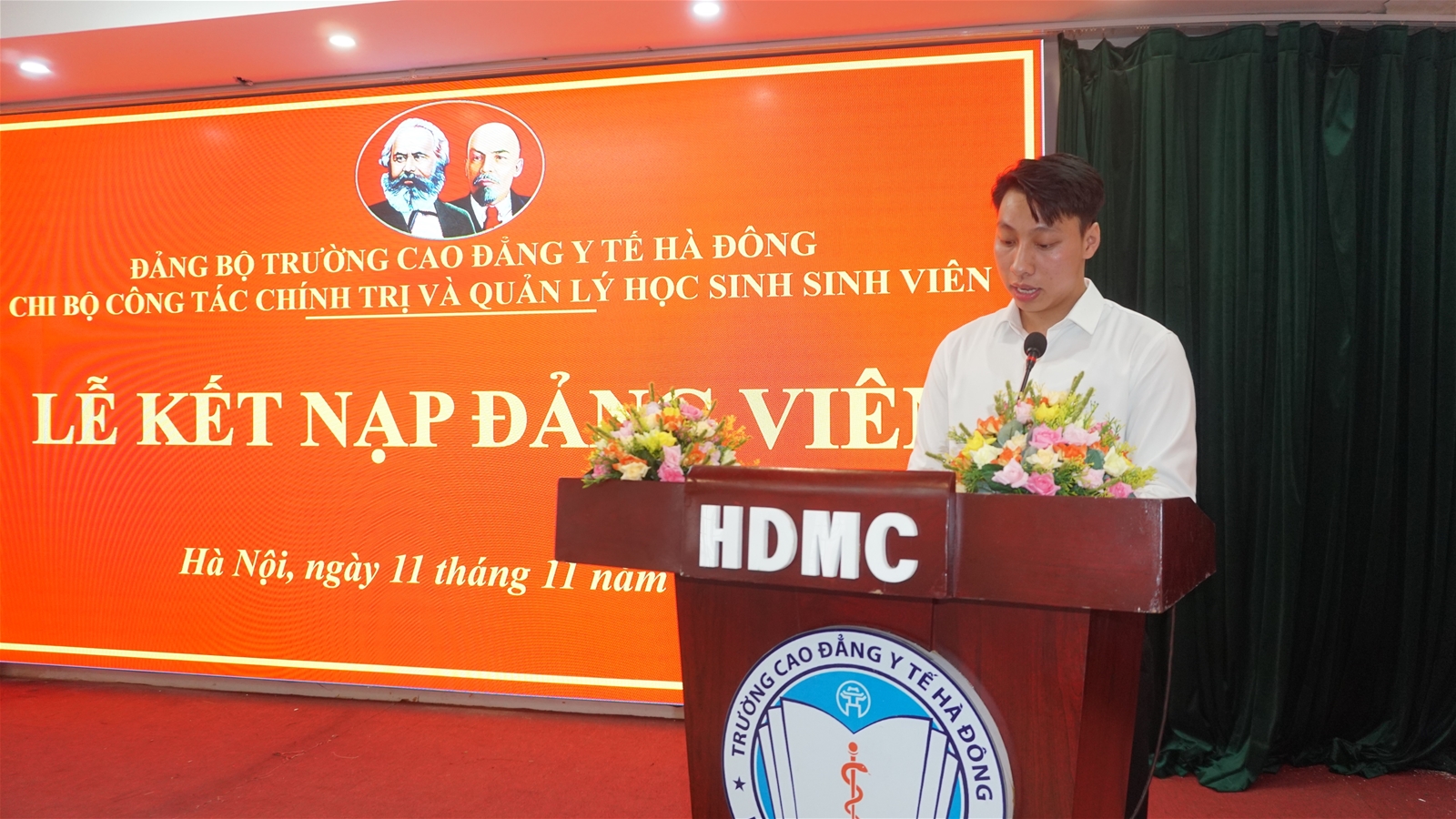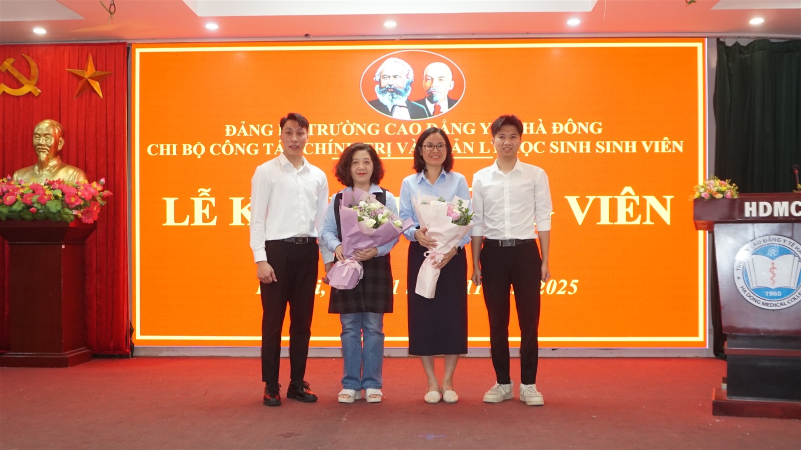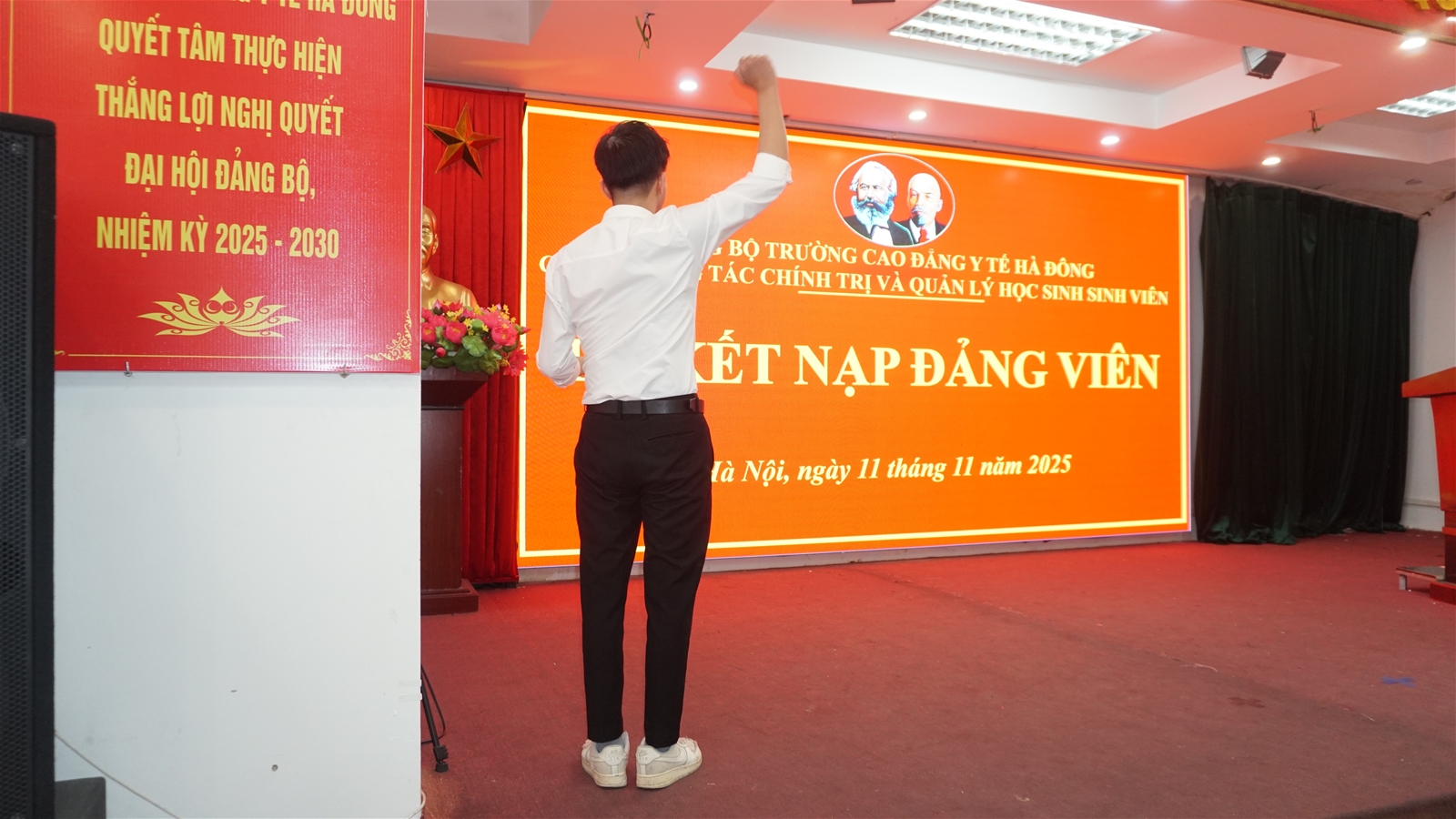 Thực hiện Quyết định của Ban thường vụ Đảng ủy Khối các trường Đại học - Cao đẳng Hà Nội, được sự đồng ý của Đảng ủy Trường Cao đẳng Y tế Hà Đông, ngày 11/11/2025, Chi bộ Công tác chính trị và Quản lý HSSV đã tổ chức Lễ kết nạp Đảng viên mới cho 02 quần chúng ưu tú, nhiệt tình hăng hái tham gia các hoạt động của Nhà trường và đạt thành tích học tập tốt.