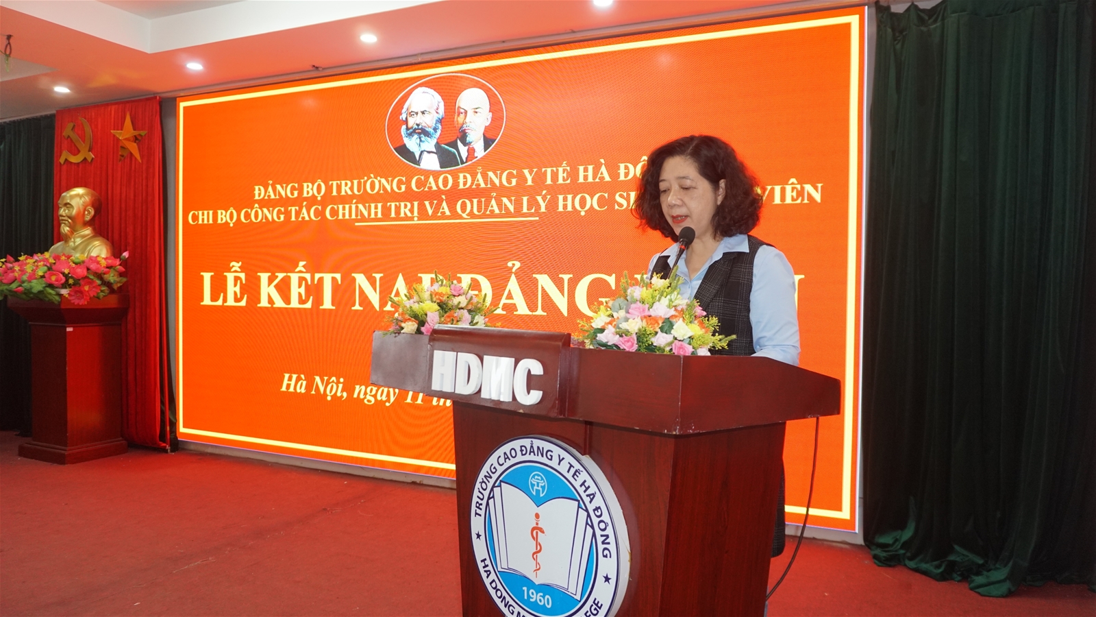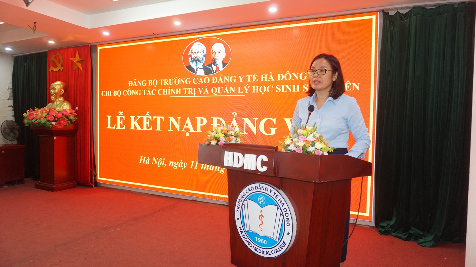 Sau khi trao Quyết định kết nạp Đảng cho các đồng chí tân Đảng viên, đồng chí Lê Thị Thu Trang – Bí thư Đảng ủy, Phó Hiệu trưởng nhà trường đã gửi lời chúc mừng đến 02 đồng chí được vinh dự đứng trong hàng ngũ của Đảng Cộng sản Việt Nam. Đồng chí nhấn mạnh rằng công tác phát triển Đảng luôn được Đảng ủy Trường Cao đẳng Y tế Hà Đông xác định là nhiệm vụ trọng tâm, góp phần xây dựng tổ chức Đảng ngày càng vững mạnh. Đồng thời, đồng chí giao nhiệm vụ cho các Đảng viên mới cần tiếp tục phát huy tinh thần tiên phong, nêu gương trong học tập và rèn luyện; coi việc học tập, tu dưỡng đạo đức, lối sống là trách nhiệm chính trị thường xuyên, không ngừng phấn đấu để trở thành những Đảng viên gương mẫu, xứng đáng với niềm tin của tập thể và tổ chức Đảng.