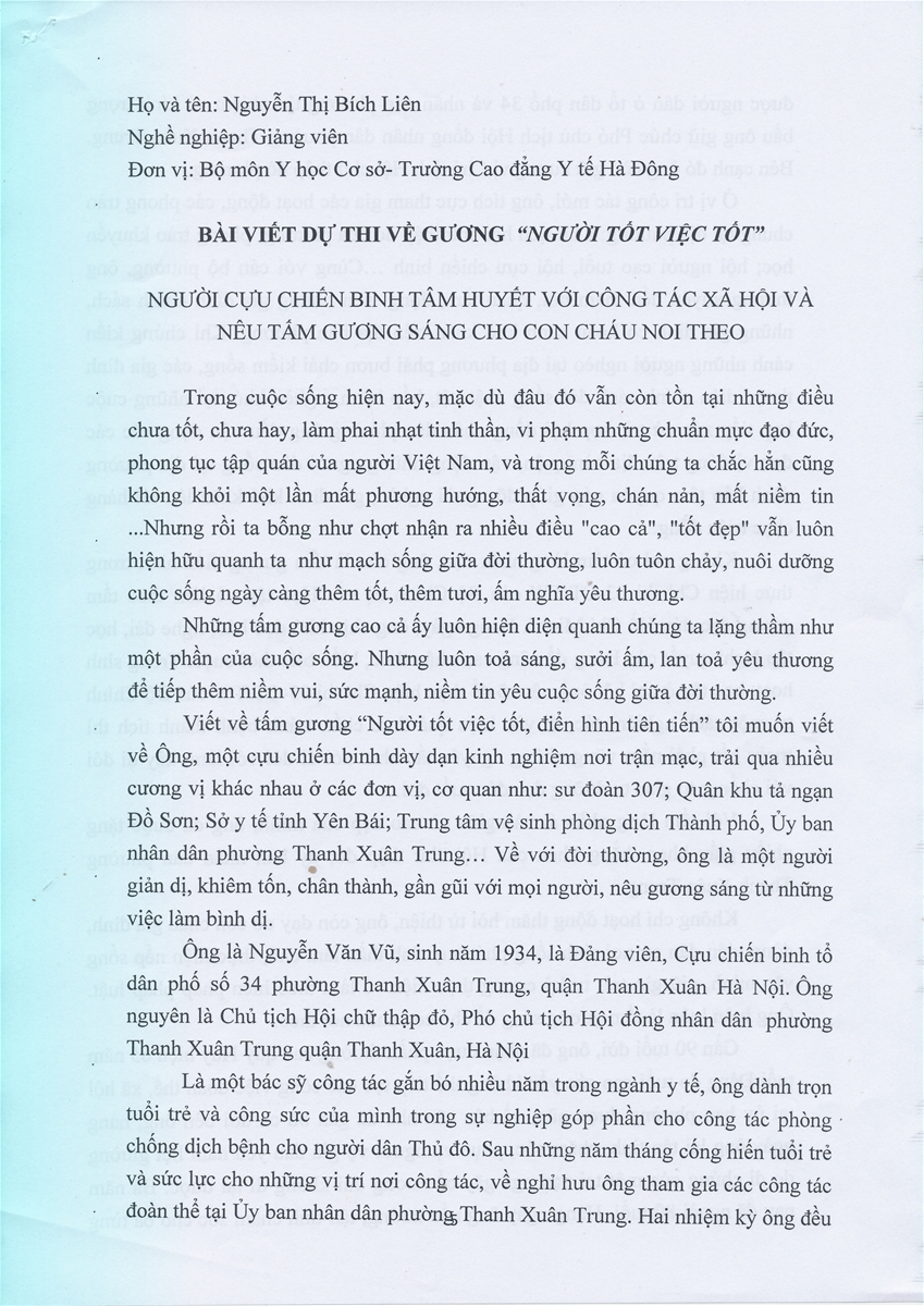 Giải Ba Cuộc thi Viết về Gương điển hình tiên tiến, người tốt việc tốt của Trường Cao đẳng Y tế Hà Đông năm 2025 (4/22/2025 12:00:00 AM)