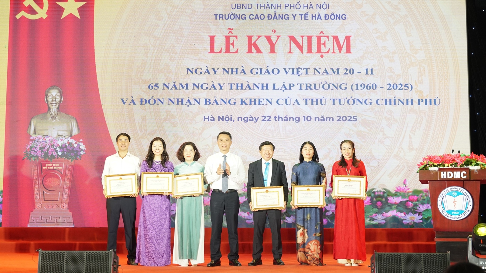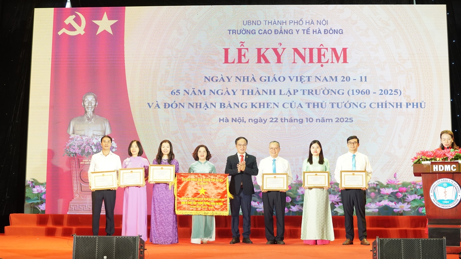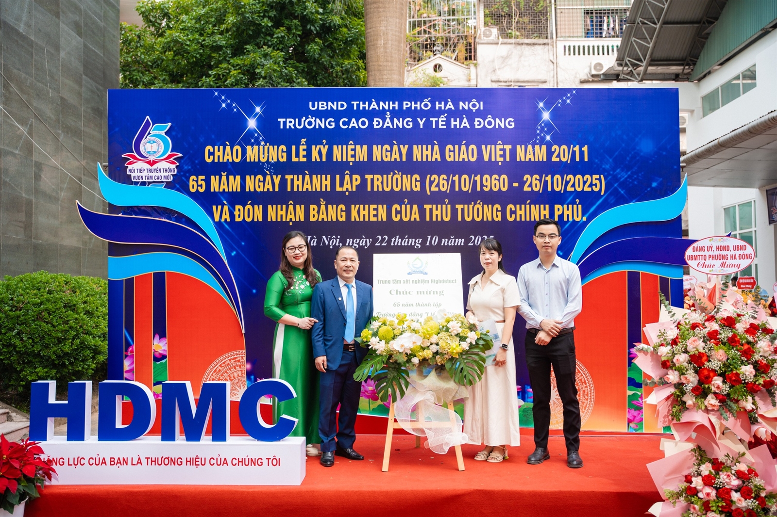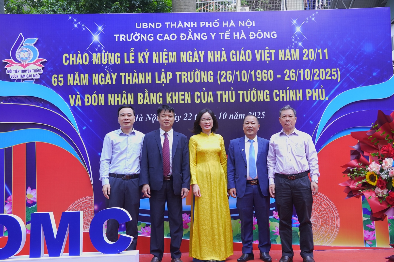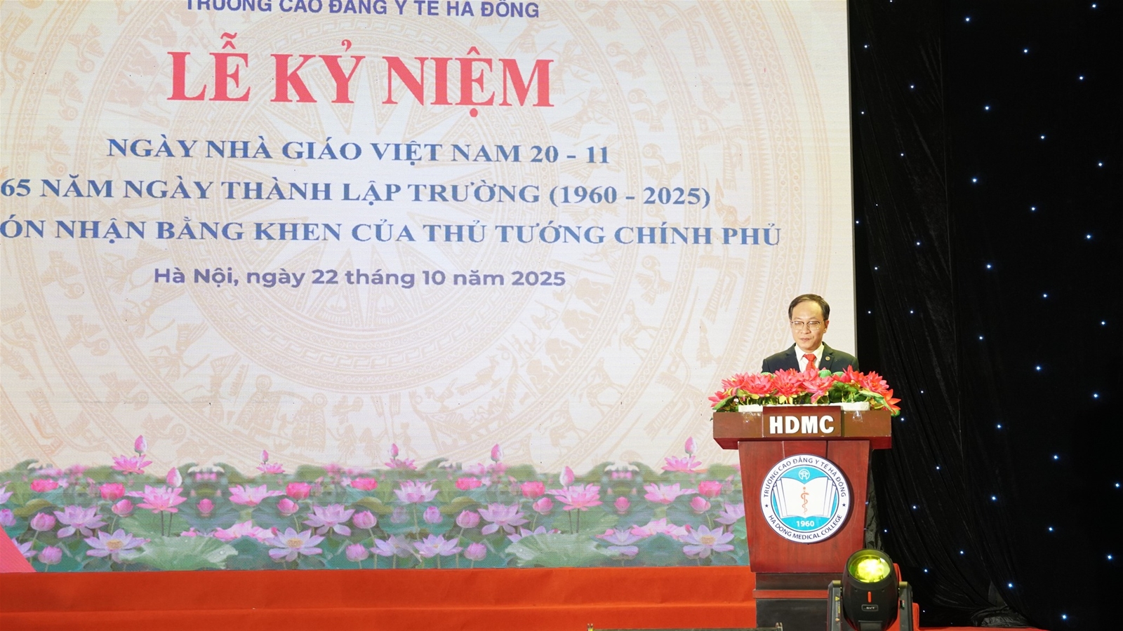 Sáng ngày 22/10/2025, Trường Cao đẳng Y tế Hà Đông long trọng tổ chức Lễ kỷ niệm 65 năm xây dựng và phát triển (1960–2025), đồng thời chào mừng Ngày Nhà giáo Việt Nam 20/11. Đây là dịp đặc biệt để các thế hệ cán bộ, giảng viên, học sinh – sinh viên cùng nhau ôn lại truyền thống vẻ vang, tri ân các thế hệ thầy cô đi trước, đồng thời khẳng định những thành tựu, dấu ấn và vị thế của Nhà trường trong sự nghiệp đào tạo nguồn nhân lực y tế chất lượng cao cho Thủ đô và cả nước.