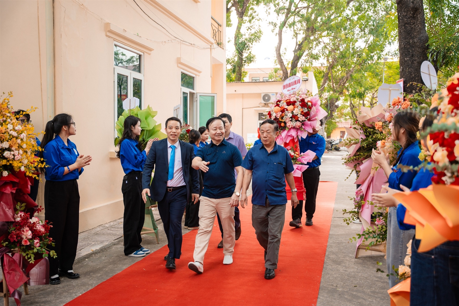 Đại diện Sinh viên tặng hoa chúc mừng thầy cô và Nhà trường